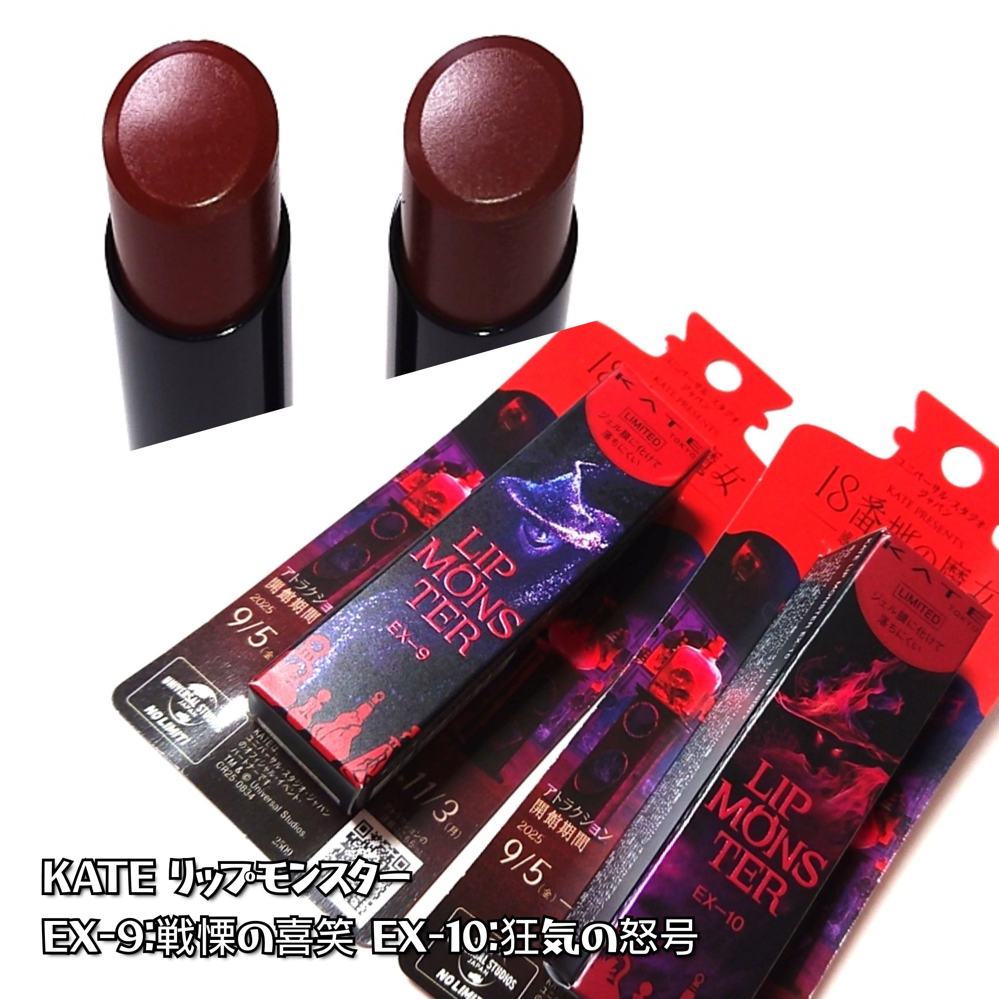 @kate.tokyo.official_jp\USJ×KATEのコラボリプモン💄/USJのホラーナイトとのコラボアイテムです♡大阪人からすると、嬉しすぎるユニバとのコラボ!魔女の喜怒哀楽をイメージした深みカラー揃い🧙♀️リップモンスタ...