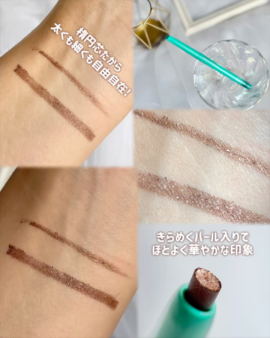 - なめらかなのに、にじみにくい クリームペンシル楕円芯タイプ ・細くも太くも自在に描ける1.5mm×3mmの楕円芯 ・自然なラインが長時間続く*スーパーウォータープルーフタイプ ・肌当たりが非常にやさしく、なめらかに描ける処方を採用 *効果には個人差があります