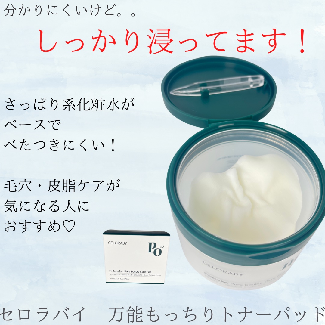 セロラバイPotensionPoreDoubleCarePadたっぷり美容液が染み込んだ万能もっちりトナーパッド✨優しく柔らかいヴィーガン生地で伸縮性が高く、最大14cmまで伸びるよ😳半月型で目の下に沿うようにピタっと密着してくれて1枚でも大...
