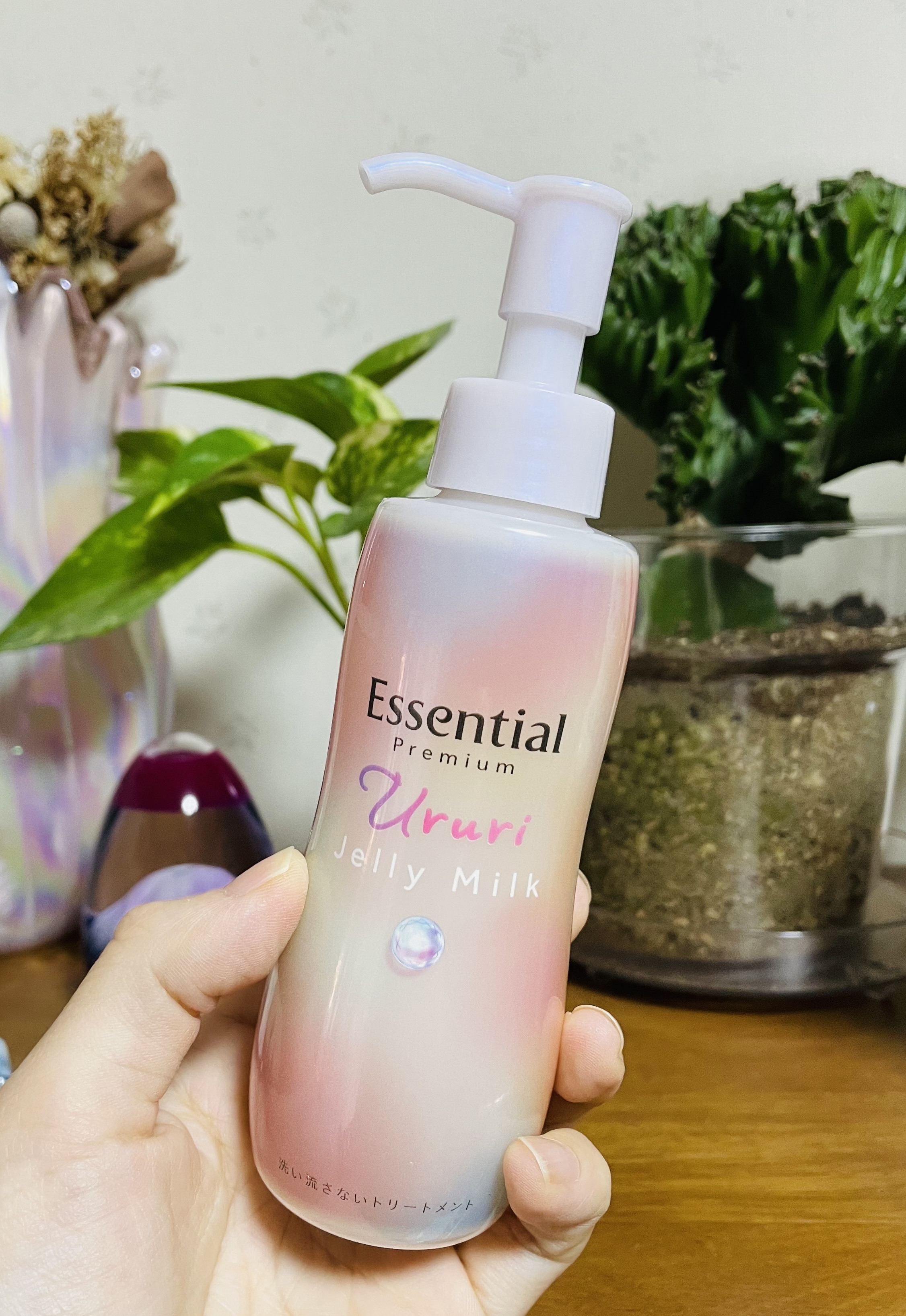 LIPS様からいただきました。エッセンシャルプレミアムうるりジェリーミルクを使ってみました。まずボトルのデザインがかわいくて、置いておくだけで気分が上がります♡実際に使ってみると、みずみずしいテクスチャーで髪にスッとなじんでベタつかず、軽い仕...
