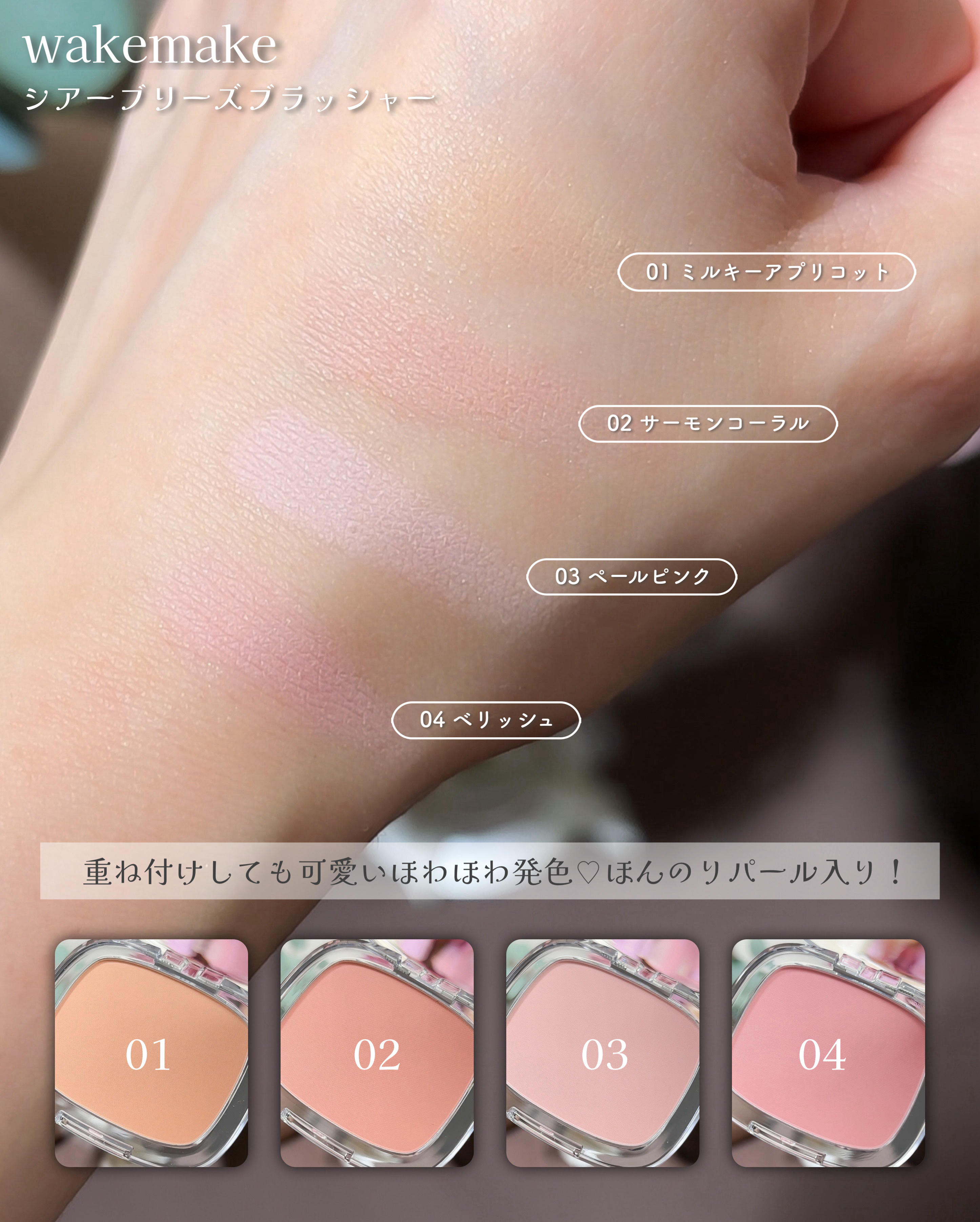 wakemakeシアーブリーズブラッシャーシームレスウェアクッション4月にリブランディングされたwakemake✨️ロゴデザインが小文字になったよ☺️雰囲気が変わって前より少しポップな印象!🩷シアーブリーズブラッシャー🩷しっとりしつつも、ふん...