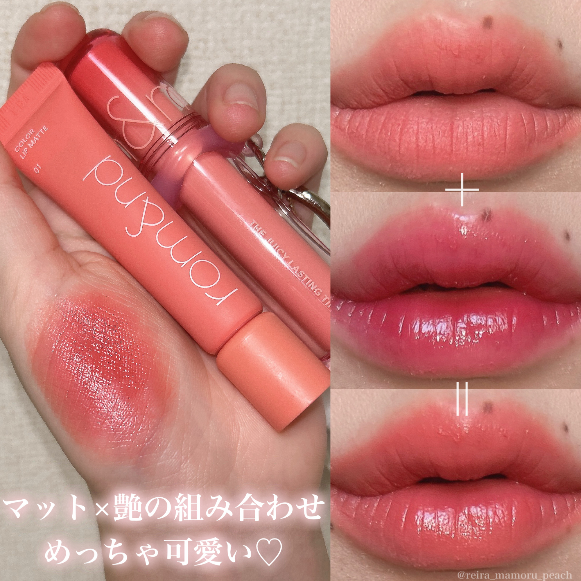 \💗ロムアンドおすすめコンビ💗/新しく登場したマットリップ💄✨リッププライマーのように縦ジワを綺麗に埋めて、ザジューシー本来のカラーを引き立ててくれるよ🪄🤍00LIPMATTE透明なテクスチャーで、唇の色を変えずにマット質感へ整えるカラー♡🤎...