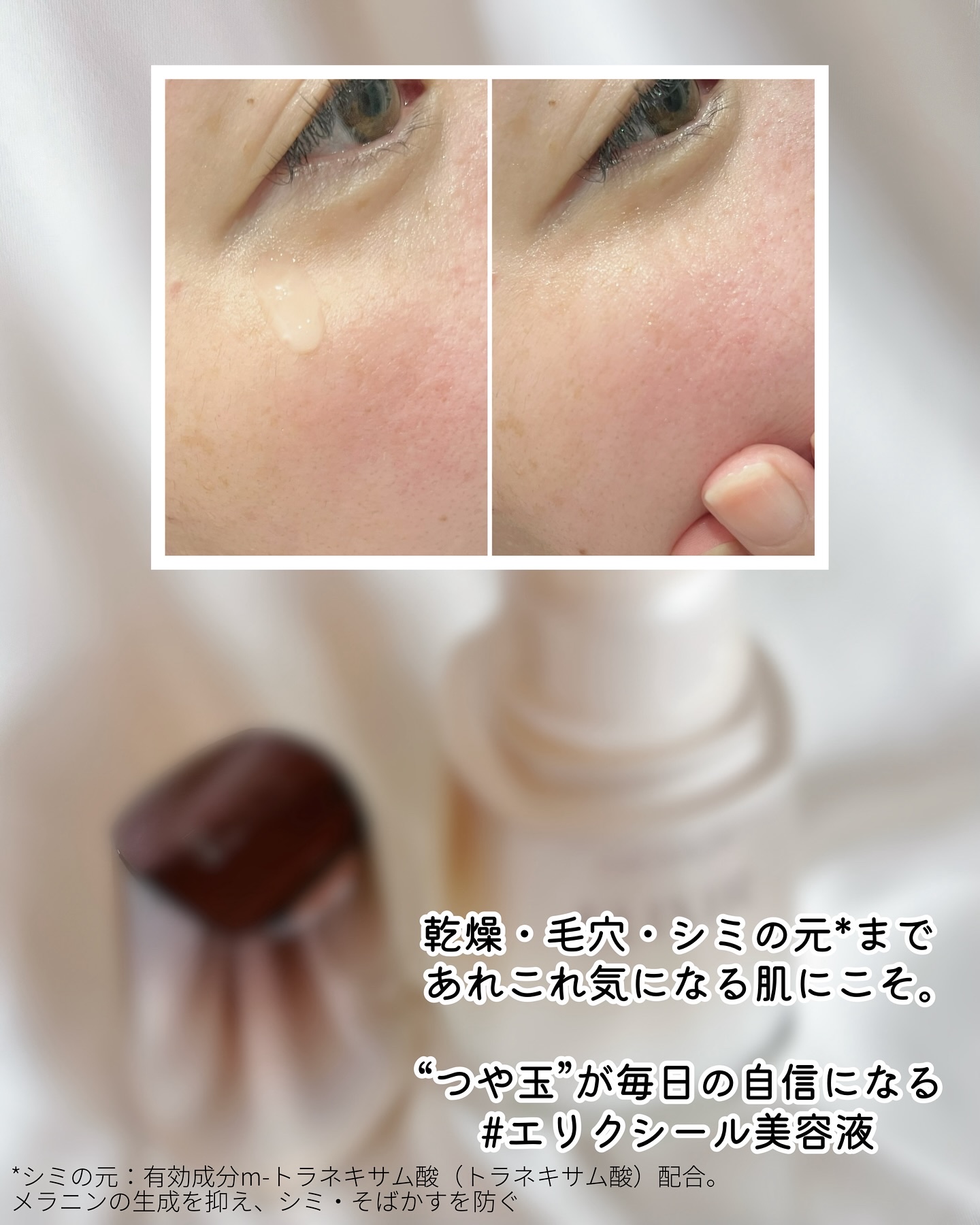 - 【医薬部外品】独自の先進技術と21種類の豊富な美容成分で、複数の大人の美肌要素に、一気にアプローチ。薬用高機能美容液。 ○独自の高機能成分「コアキシマイド※3」をはじめとした21種類の豊富な美容成分を、角層深くまで届けます。 ※3 ヒドロキシエチルエチレンウレア(ハリ整肌・保湿) ○メラニンの生成を抑え、シミ・そばかすを防ぐ美白有効成分「m-トラネキサム酸※6」を配合 ※6 有効成分m-トラネキサム酸(トラネキサム酸)配合。メラニンの生成を抑え、シミ・ソバカスを防ぐ。 ○エリクシール独自技術「倍速エッセンステクノロジー」搭載 独自の高機能成分「コアキシマイド※3」が、約2倍※4速くリリースされる技術 ※3 ヒドロキシエチルエチレンウレア(ハリ整肌・保湿) ※4 人口膜で計測した当該技術の有無による放出時間を比較 ○複数の大人の美肌要素に、一気にアプローチ。 ハリに満ち、明るくなめらかな、「つや玉」輝く理想の肌へ導きます。 ○リラックス感のある心地よいアクアフローラルの香り ○アレルギーテスト済み (全てのかたにアレルギーが起きないというわけではありません)。 ○朝晩の使用で約1.5か月※11使用できます。 ※11 使用方法に沿った使い方での目安 ○ノンコメドジェニックテスト済み(全ての方にニキビができないというわけではありません。)