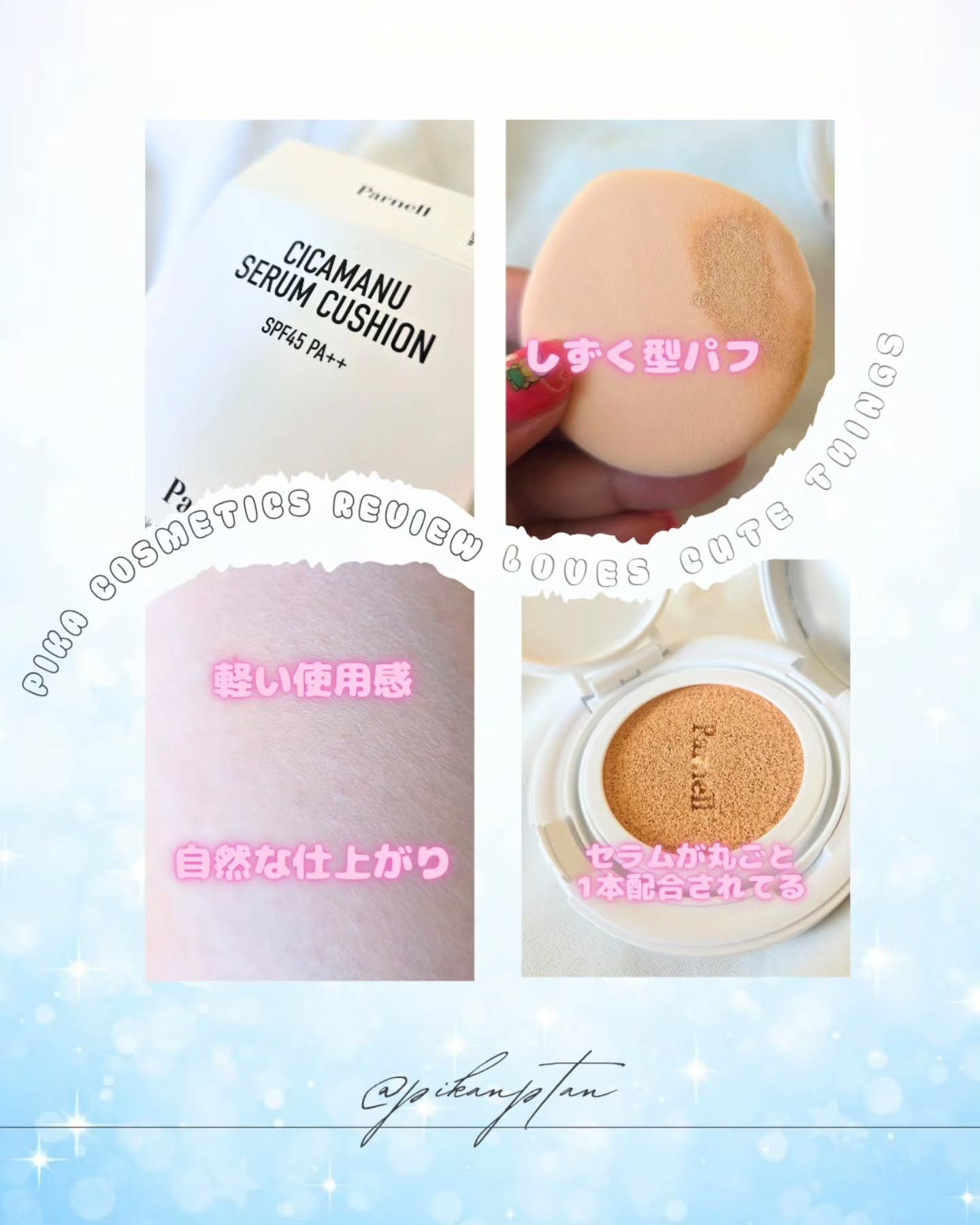 #PRParnell様@parnell.jpシカマヌセラムクッションファンデ🩵ご提供いただきました🎀ノンケミカル処方でSPF45PA++21号フェアアイボリー鎮静美容液が丸ごと1本配合✨パーネルはニュージーランドの天然原料を使用し、敏感肌の方...
