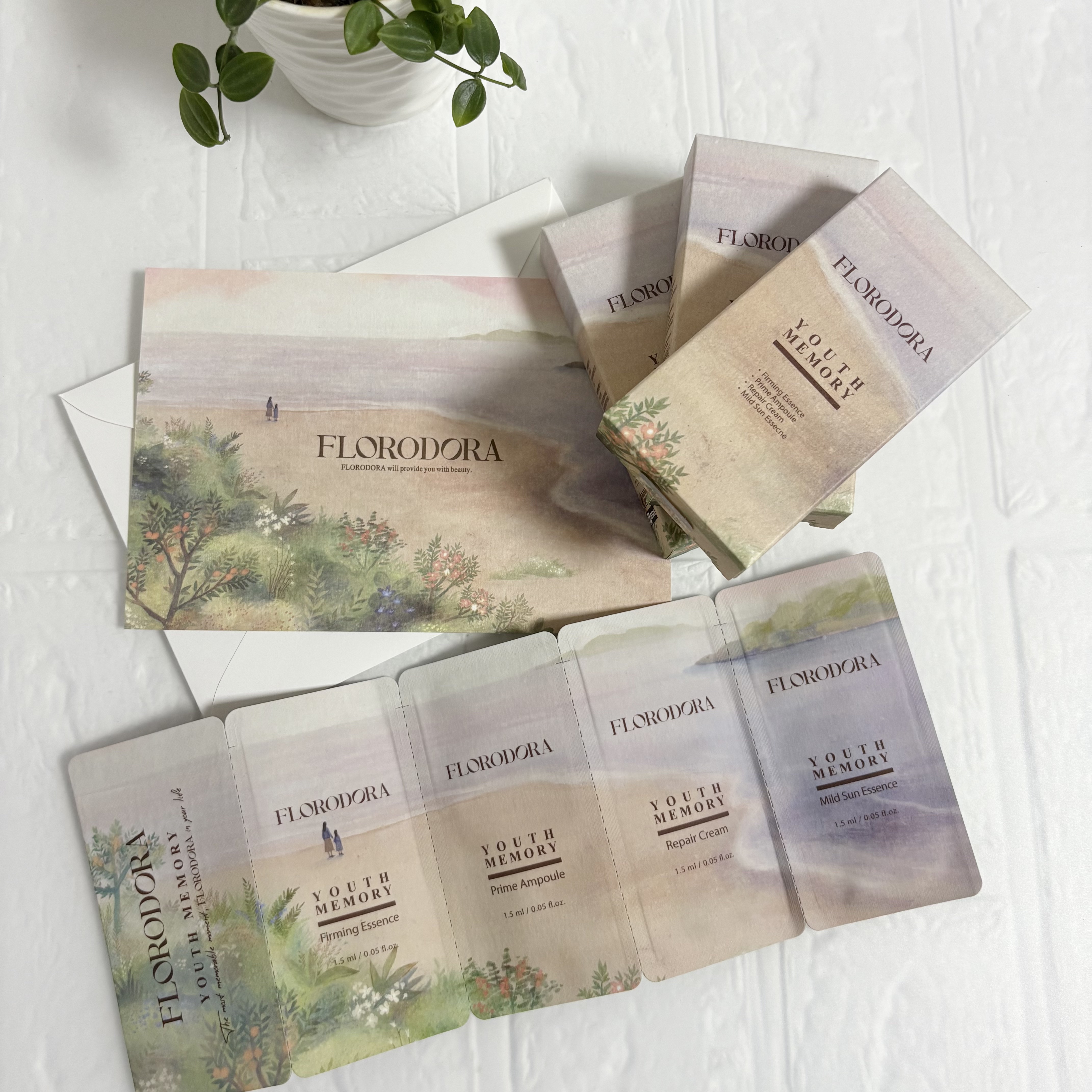 フローロドラ独自の技術「ユースメモリー」による、低刺激のスローエイジングケア✨Florodoraユースメモリーギフトパッケージクリーム+サンエッセンス+スキンケアサンプル2個プレゼントや自分へのご褒美におすすめ🎁💟ユースメモリーリペアクリーム...