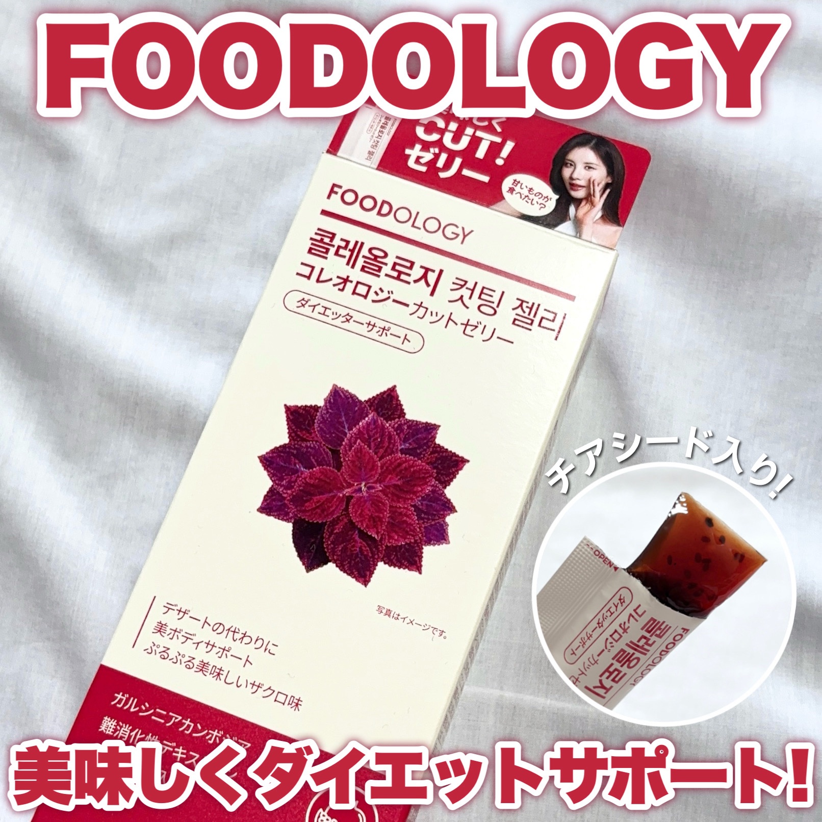 おいしくダイエットサポート/FOODOLOGYコレオロジーカットゼリー日韓同時に1位、チアシードが入った話題のダイエットサポートゼリー✨ガルシニアカンボジア配合🌿炭水化物の脂肪合成を抑制し、体脂肪の減少に役立つとされているそう😌食後に上昇する...