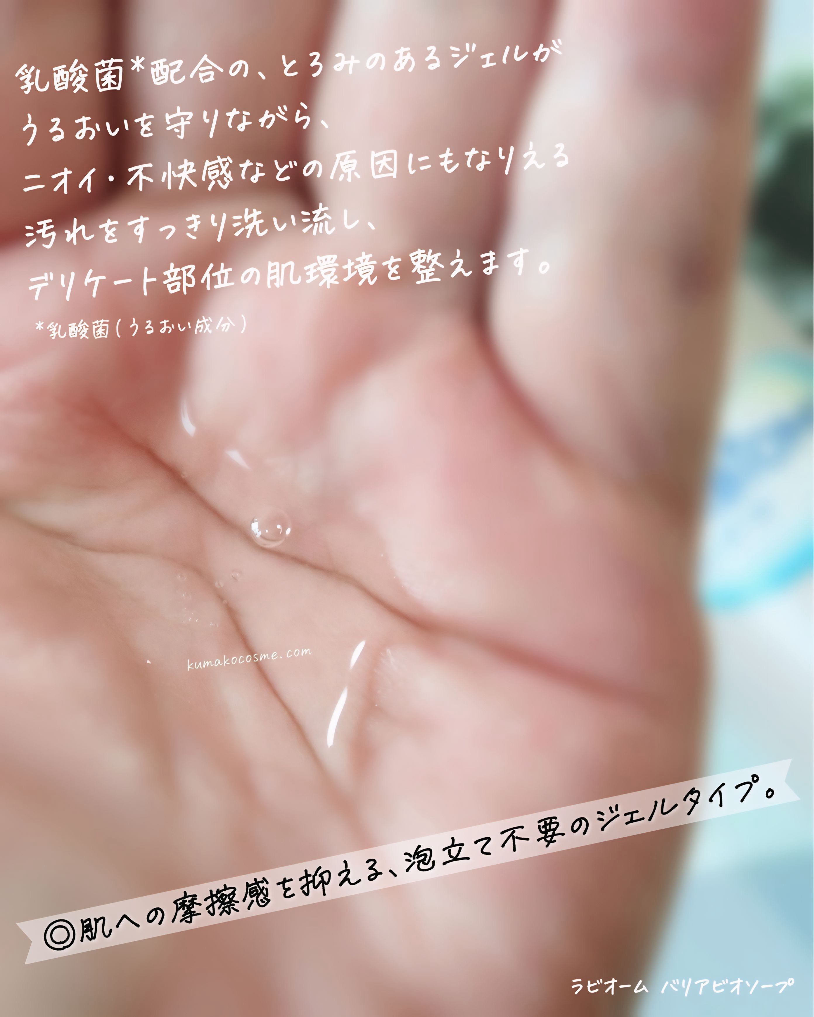 - 乳酸菌(保湿成分)*6配合のとろみのあるジェルが、うるおい守りながら、ニオイ・不快感の原因にもなりうる汚れをすっきり落とし、デリケート部位の肌環境を整えます。 ① ロート独自成分 乳酸発酵ヒアルロン酸*7(保湿成分)、乳酸菌*6(保湿成分)、ラビオエイド*8(保湿成分)を配合。 ②デリケートな部位へのやさしさにこだわった処方。 弱酸性、防腐剤フリー、敏感肌の方のご協力によるパッチテスト済(すべての方に刺激が起こらないというわけではございません。) ③清々しいフローラルの香り。ニオイベール効果で気になるニオイをケア。 *6:乳酸桿菌、*7:乳酸球菌、ヒアルロン酸発酵液、*8:ボンバクスコスタツム花エキス 先行発売:2024年12月3日(火)より順次、ECサイト(Amazon、楽天、LOHACO、@cosme SHOPPING)