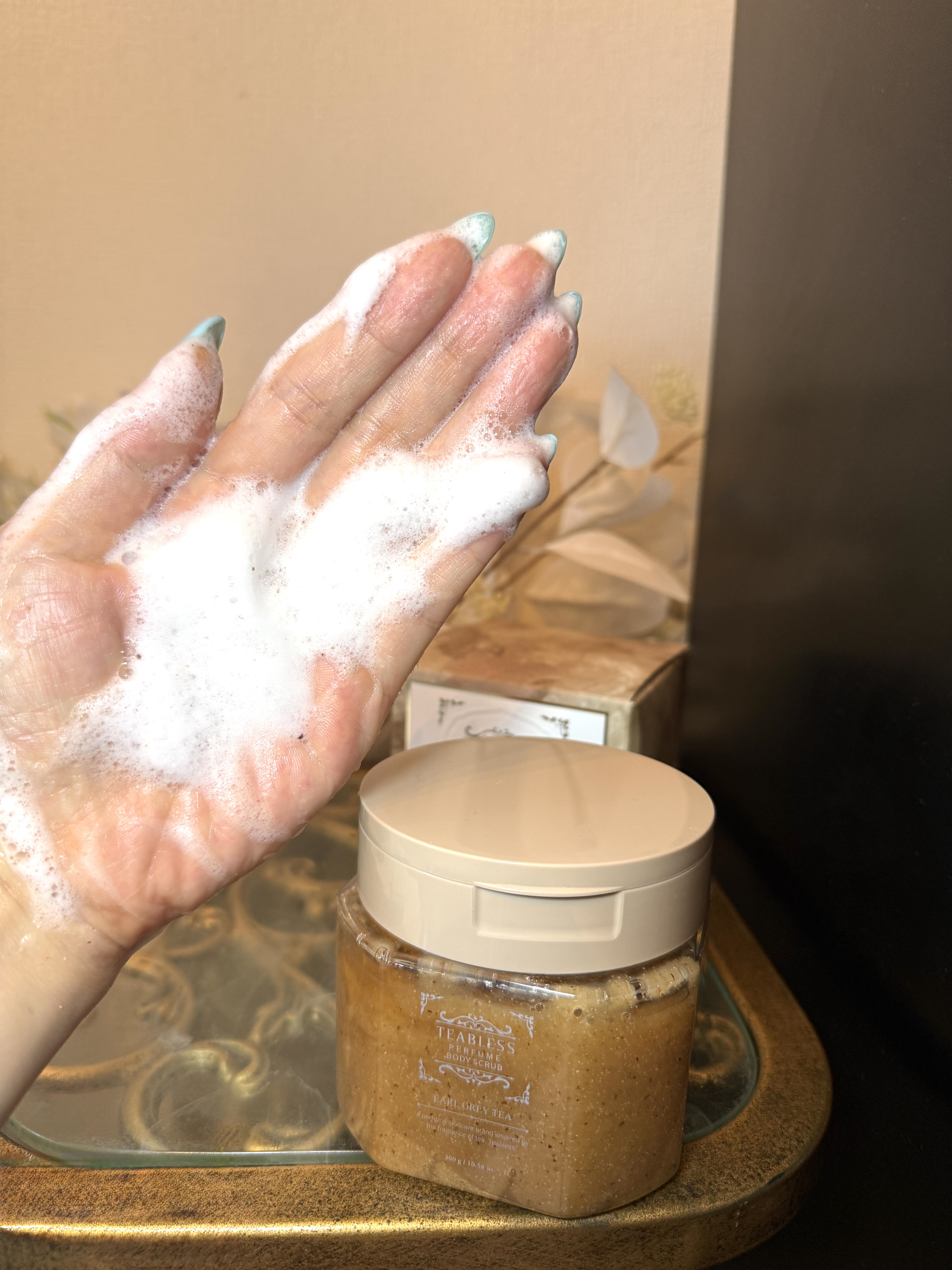 #TEABLESSアールグレイティージャム・ボディスクラブスクラブ&ボディソープがこれ1本で完了❣️乾いた肌にはスクラブとして、不純物&角質をケアしてくれる🥰水に触れるとふわっと泡立ち、やさしく洗い上げるボディソープに変化する2in1タイプ✨...