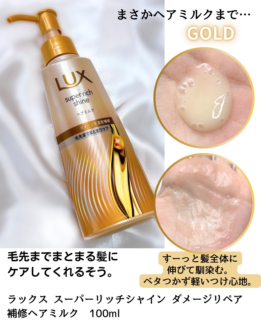 ✨ゴールド✨で気分も髪もアガる❕ラックススーパーリッチシャインシリーズがリニューアル!ラックススーパーリッチシャインダメージリペア・補修シャンプー/補修コンディショナー各400g・補修チューブトリートメント300g・補修ヘアミルク100m...