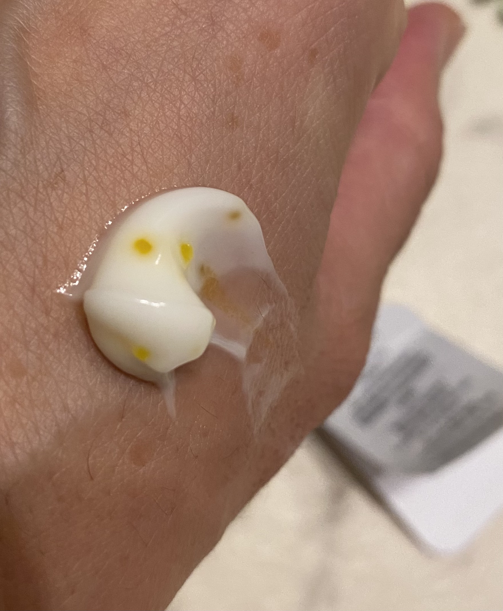 ゆるいクリームタイプで伸ばしやすい。 最近、日焼け止めが目に染みることが多かったのですが、こちらは大丈夫でした。 しっとりタイプで、少しペタペタする感じですが、時間をおくとましになります。 ニキビができたりすることなく、いい商品だと思います。 P.CALMの商品はいろいろ試していますが、肌に合うものが多いです。