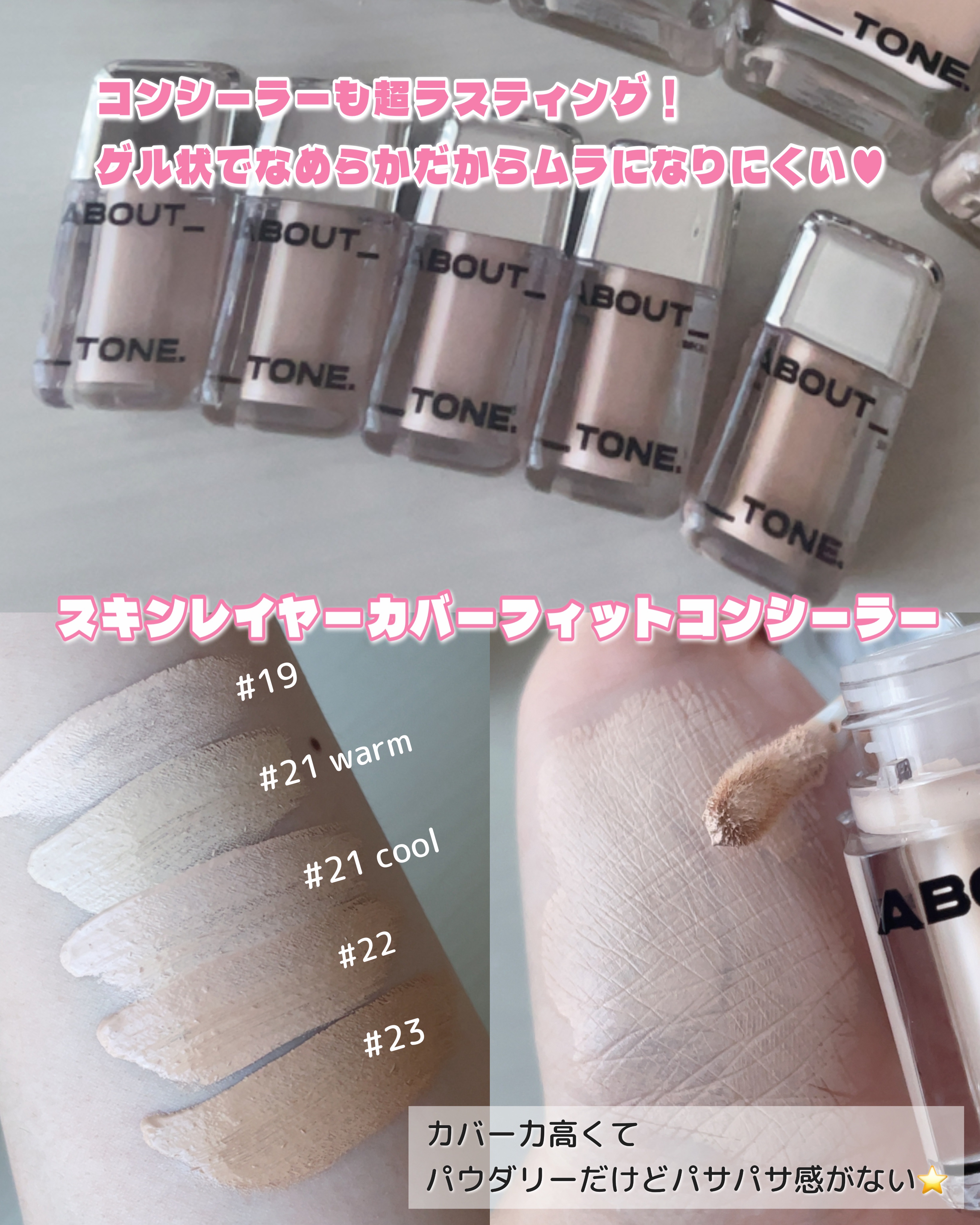 ABOUT_TONE.飲み会リップで有名なBBIAによって立ち上げられたメイクアップブランドなんだって韓国の美容YouTuberも大絶賛のアバウトトーンのベースメイクスキンレイヤーフィットファンデーションスキンレイヤーカバーフィットコンシーラ...