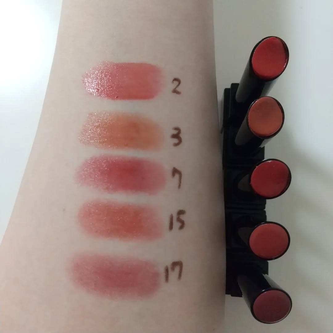 - <01 欲望の塊> テトライソステアリン酸ジペンタエリスリチル、トリ(カプリル酸/カプリン酸)グリセリル、オクチルドデカノール、ラウロイルグルタミン酸ジ(フィトステリル/オクチルドデシル)、ビスアルキル(C16-18)グリセリルウンデシルジメチコン、イソノナン酸イソトリデシル、水添ポリイソブテン、ラウロイルグルタミン酸ジ(オクチルドデシル/フィトステリル/ベヘニル)、パラフィン、合成ワックス、ダイマージリノール酸(フィトステリル/イソステアリル/セチル/ステアリル/ベヘニル)、マイクロクリスタリンワックス、水添マイクロクリスタリンワックス、ヒドロキシステアリン酸エチルヘキシル、トコフェロール、ホホバ種子油、オリーブ果実油、アーモンド油、(エチレン/プロピレン)コポリマー、ポリエチレン、ジメチコン、(+/-)(チタン/酸化チタン)焼結物、マイカ、ラウロイルアスパラギン酸Na、ラウロイルリシン、塩化亜鉛、酸化チタン、酸化鉄、水酸化Al、硫酸Ba、トリイソステアリン酸イソプロピルチタン、酸化スズ、ホウケイ酸(Ca/Al)、合成フルオロフロゴパイト、黄4、黄5、赤104(1)、赤201、赤202 <02 ピンクバナナ> テトライソステアリン酸ジペンタエリスリチル、トリ(カプリル酸/カプリン酸)グリセリル、オクチルドデカノール、ラウロイルグルタミン酸ジ(フィトステリル/オクチルドデシル)、ビスアルキル(C16-18)グリセリルウンデシルジメチコン、イソノナン酸イソトリデシル、水添ポリイソブテン、ラウロイルグルタミン酸ジ(オクチルドデシル/フィトステリル/ベヘニル)、パラフィン、合成ワックス、ダイマージリノール酸(フィトステリル/イソステアリル/セチル/ステアリル/ベヘニル)、マイクロクリスタリンワックス、水添マイクロクリスタリンワックス、ヒドロキシステアリン酸エチルヘキシル、トコフェロール、ホホバ種子油、オリーブ果実油、アーモンド油、(エチレン/プロピレン)コポリマー、ポリエチレン、ジメチコン、(+/-)(チタン/酸化チタン)焼結物、マイカ、ラウロイルアスパラギン酸Na、ラウロイルリシン、塩化亜鉛、酸化チタン、酸化鉄、水酸化Al、硫酸Ba、トリイソステアリン酸イソプロピルチタン、酸化スズ、ホウケイ酸(Ca/Al)、合成フルオロフロゴパイト、黄4、黄5、赤104(1)、赤201、赤202 <03 陽炎> テトライソステアリン酸ジペンタエリスリチル、トリ(カプリル酸/カプリン酸)グリセリル、オクチルドデカノール、ラウロイルグルタミン酸ジ(フィトステリル/オクチルドデシル)、ビスアルキル(C16-18)グリセリルウンデシルジメチコン、イソノナン酸イソトリデシル、水添ポリイソブテン、ラウロイルグルタミン酸ジ(オクチルドデシル/フィトステリル/ベヘニル)、パラフィン、合成ワックス、ダイマージリノール酸(フィトステリル/イソステアリル/セチル/ステアリル/ベヘニル)、マイクロクリスタリンワックス、水添マイクロクリスタリンワックス、ヒドロキシステアリン酸エチルヘキシル、トコフェロール、ホホバ種子油、オリーブ果実油、アーモンド油、(エチレン/プロピレン)コポリマー、ポリエチレン、ジメチコン、(+/-)(チタン/酸化チタン)焼結物、マイカ、ラウロイルアスパラギン酸Na、ラウロイルリシン、塩化亜鉛、酸化チタン、酸化鉄、水酸化Al、硫酸Ba、トリイソステアリン酸イソプロピルチタン、酸化スズ、ホウケイ酸(Ca/Al)、合成フルオロフロゴパイト、黄4、黄5、赤104(1)、赤201、赤202 <04 パンプキンワイン> テトライソステアリン酸ジペンタエリスリチル、トリ(カプリル酸/カプリン酸)グリセリル、オクチルドデカノール、ラウロイルグルタミン酸ジ(フィトステリル/オクチルドデシル)、ビスアルキル(C16-18)グリセリルウンデシルジメチコン、イソノナン酸イソトリデシル、水添ポリイソブテン、ラウロイルグルタミン酸ジ(オクチルドデシル/フィトステリル/ベヘニル)、パラフィン、合成ワックス、ダイマージリノール酸(フィトステリル/イソステアリル/セチル/ステアリル/ベヘニル)、マイクロクリスタリンワックス、水添マイクロクリスタリンワックス、ヒドロキシステアリン酸エチルヘキシル、トコフェロール、ホホバ種子油、オリーブ果実油、アーモンド油、(エチレン/プロピレン)コポリマー、ポリエチレン、ジメチコン、(+/-)(チタン/酸化チタン)焼結物、マイカ、ラウロイルアスパラギン酸Na、ラウロイルリシン、塩化亜鉛、酸化チタン、酸化鉄、水酸化Al、硫酸Ba、トリイソステアリン酸イソプロピルチタン、酸化スズ、ホウケイ酸(Ca/Al)、合成フルオロフロゴパイト、黄4、黄5、赤104(1)、赤201、赤202 <05 ダークフィグ> テトライソステアリン酸ジペンタエリスリチル、トリ(カプリル酸/カプリン酸)グリセリル、オクチルドデカノール、ラウロイルグルタミン酸ジ(フィトステリル/オクチルドデシル)、ビスアルキル(C16-18)グリセリルウンデシルジメチコン、イソノナン酸イソトリデシル、水添ポリイソブテン、ラウロイルグルタミン酸ジ(オクチルドデシル/フィトステリル/ベヘニル)、