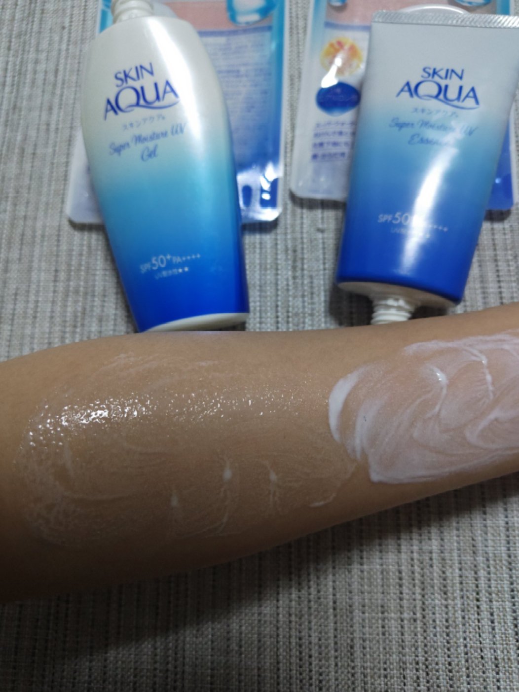 スキンアクアの日焼け止め2種を比較!▫️スキンアクア・スーパーモイスチャーUVエッセンス・スーパーモイスチャーUVジェルドラッグストアで買えるプチプラ日焼け止め。ジェルを愛用していましたが、エッセンスタイプも気になり、購入して使い比べてみまし...