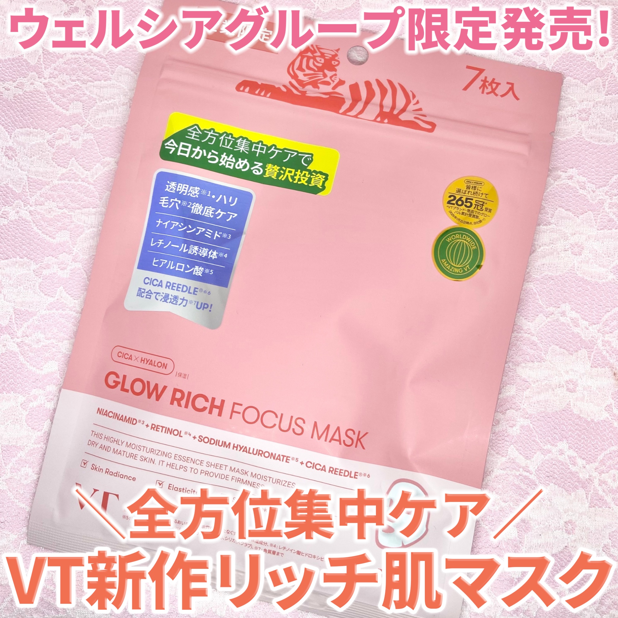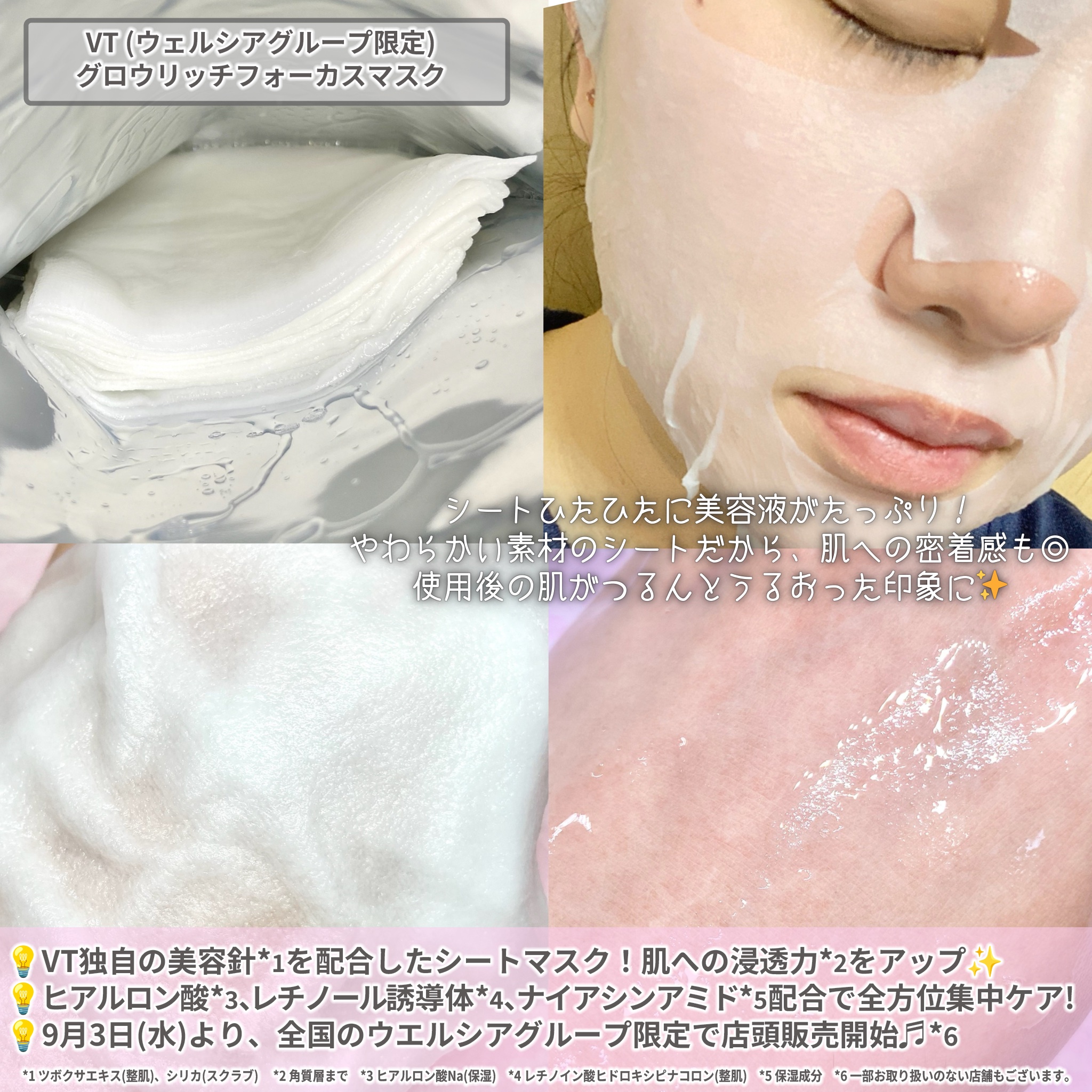VT様からご提供いただきました!❄︎••••❄︎••••❄︎VTGROWRICHFOCUSMASK7枚入¥770❄︎••••❄︎••••❄︎9/3から全国のウエルシアグループ限定で店頭販売開始!※一部店舗取り扱いなし1枚で贅沢集中エイジングケ...