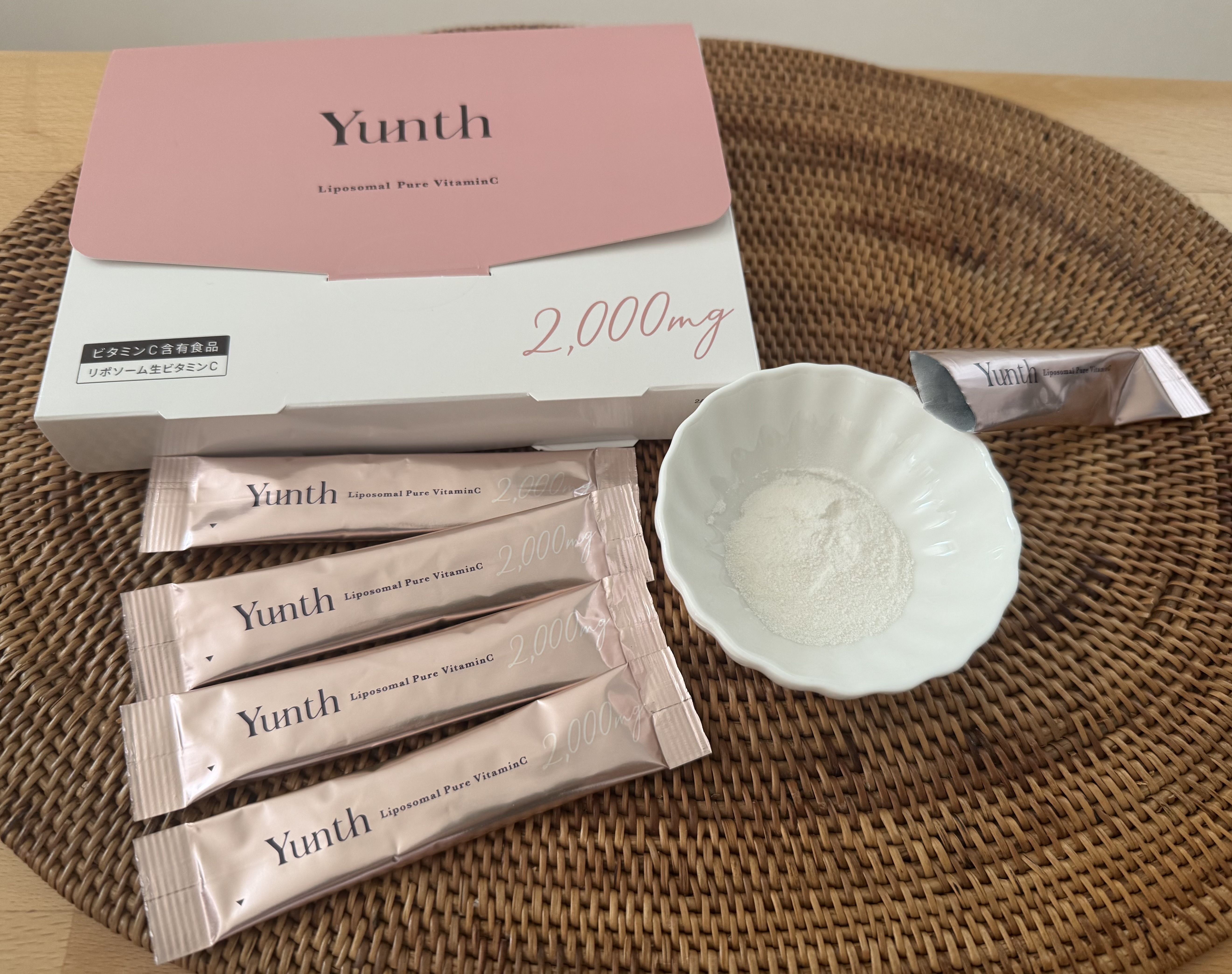 - ①レモン約100個分相当の高濃度ビタミンC、1本に2,000mg配合 ビタミンCは、体内でつくることができないため、毎日の補給が欠かせない栄養素です。インナーケアだけでなく、エイジングケア*1、そして日差しが気になる季節にも欠かせません。「Yunth リポソーム生ビタミンC」は、1本あたり2,000mg*2(レモン約100個分相当*2)の高濃度ビタミンCを贅沢に配合し、毎日の美しさと健やかさを力強くサポートします。 *1 年齢に応じたケア *2 リポソームビタミンC1,000mgとして ②高吸収型「リポソーム生ビタミンC」×即攻型「生ビタミンC」を配合 ビタミンCは大量に摂取しても体外に排出されやすいという特性があります。 Yunthではゆっくり届く[高吸収型]リポソーム生ビタミンCと、素早く広がる[即攻*型]の生ビタミンCを1000㎎ずつ配合し、常に必要な量を体内に巡らせられる設計に。 * 溶ける速さのこと ③レチノール&ホワイトトマトで美容の贅沢ケア 生ビタミンCに加え、レチノール(ビタミンA)や、無色カロテノイドが豊富に含まれているホワイトトマトエキスを厳選配合。 ビタミンCと一緒に摂りたいレチノールと同時に摂取することで相性がよいと言われており、ホワイトトマトは、日差しの強い季節に取り入れたい成分として注目されています。 内側から美容ケアをサポートし、エイジングケア*にもアプローチします。 * 年齢に応じたケア ④人工甘味料など無添加でも、飲みやすく・続けやすい 毎日口にするものだから、余計なものは入れていません。 人工甘味料、合成香料、合成着色料は一切不使用。 レモンのビタミンCをそのままに、クセになるすっぱさです。 さっと溶けて飲みやすく毎日続けられるよう、超微細なパウダータイプです。 ※公式サイト、ECモール(Amazon、楽天など)で発売中