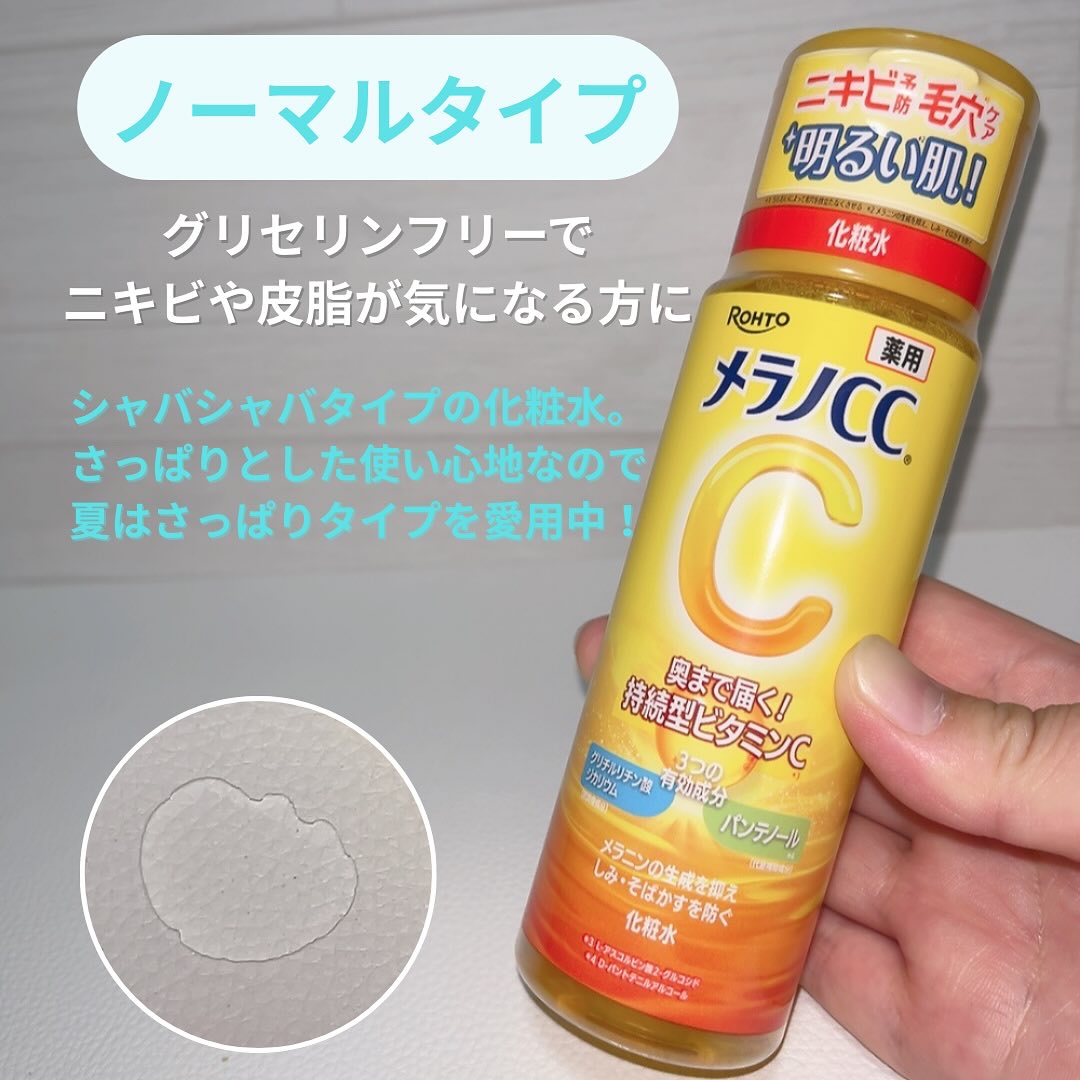 ロート製薬さまからいただきました。#PR#本音レビュー_メラノCC8月30日にメラノCC薬用シミ対策美白化粧水がリニューアル✨ノーマルタイプはサラッとした使い心地でお肌にすーっと浸透してくれます💗べたつきにくいのでメイク前にも使いやすい☺️し...