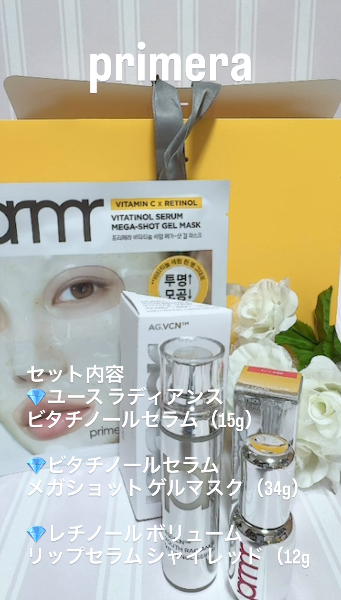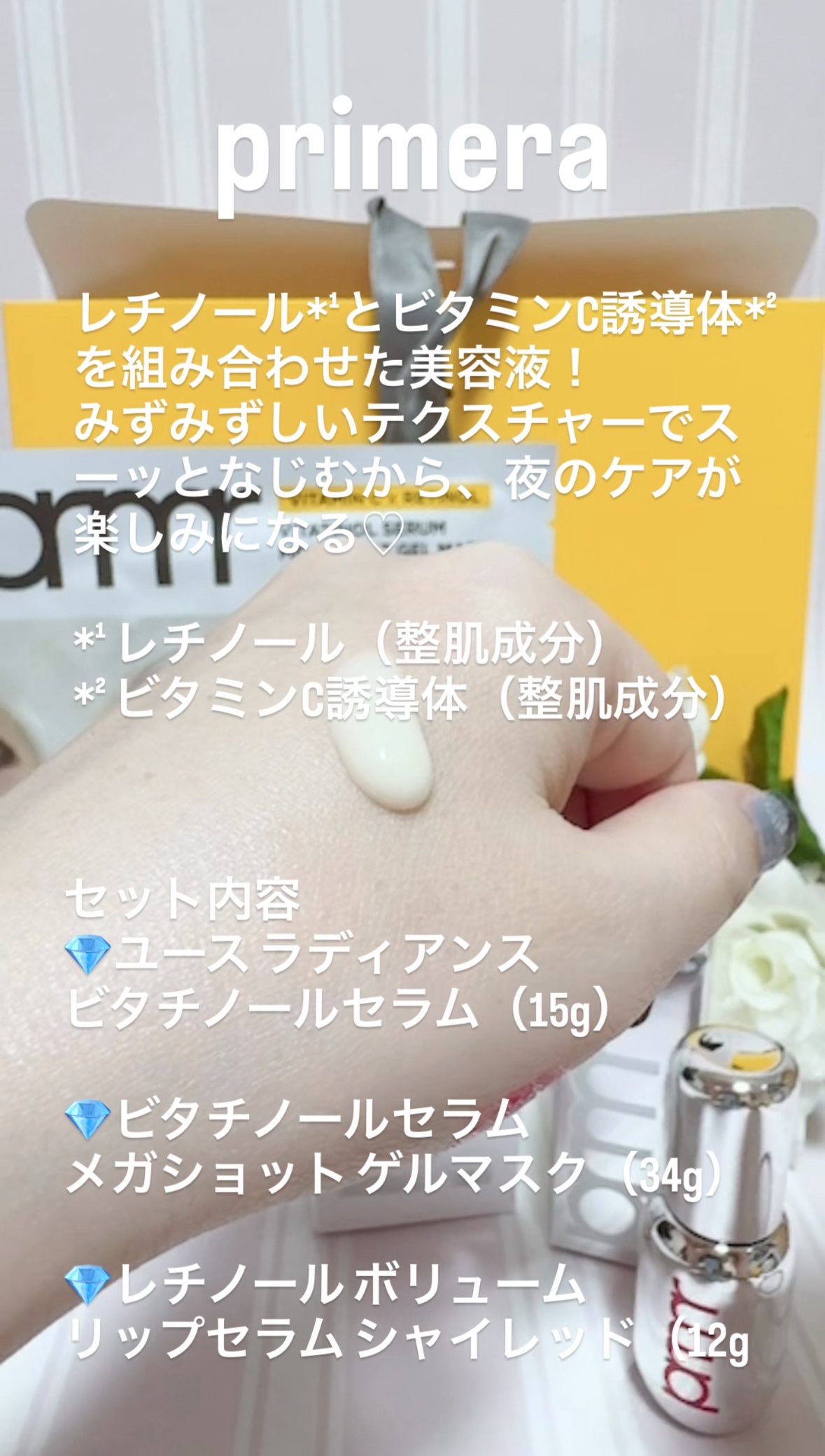 primera様から🌼豪華で素敵な🎁いただきました🐦ありがとうございます💓🧡『ビタチノールメガショットゲルマスク』34gお肌にビタチノールを集中チャージ!✮アスコルビン酸(整肌保湿成分)レチノール(整肌成分)🧡『ユースラディアンスビタチノール...