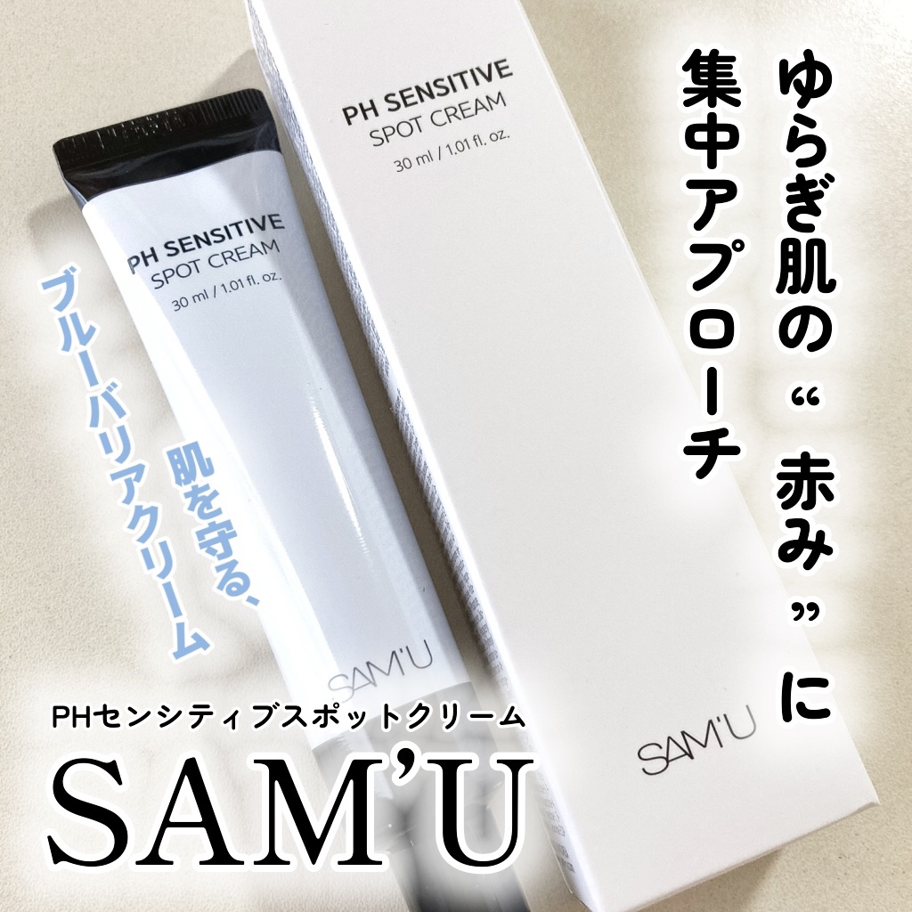 @sam_u_jp@samu_jp_review⛄️✔️SAM'UPHSENSITIVESPOTCREAM肌の赤みを素早く抑えてくれるグアイアズレン*を含んだブルーバリアクリーム🌿✨✨他にもセラミド*、ペプチド*が入ってるよ🌼肌のバリア機能を...