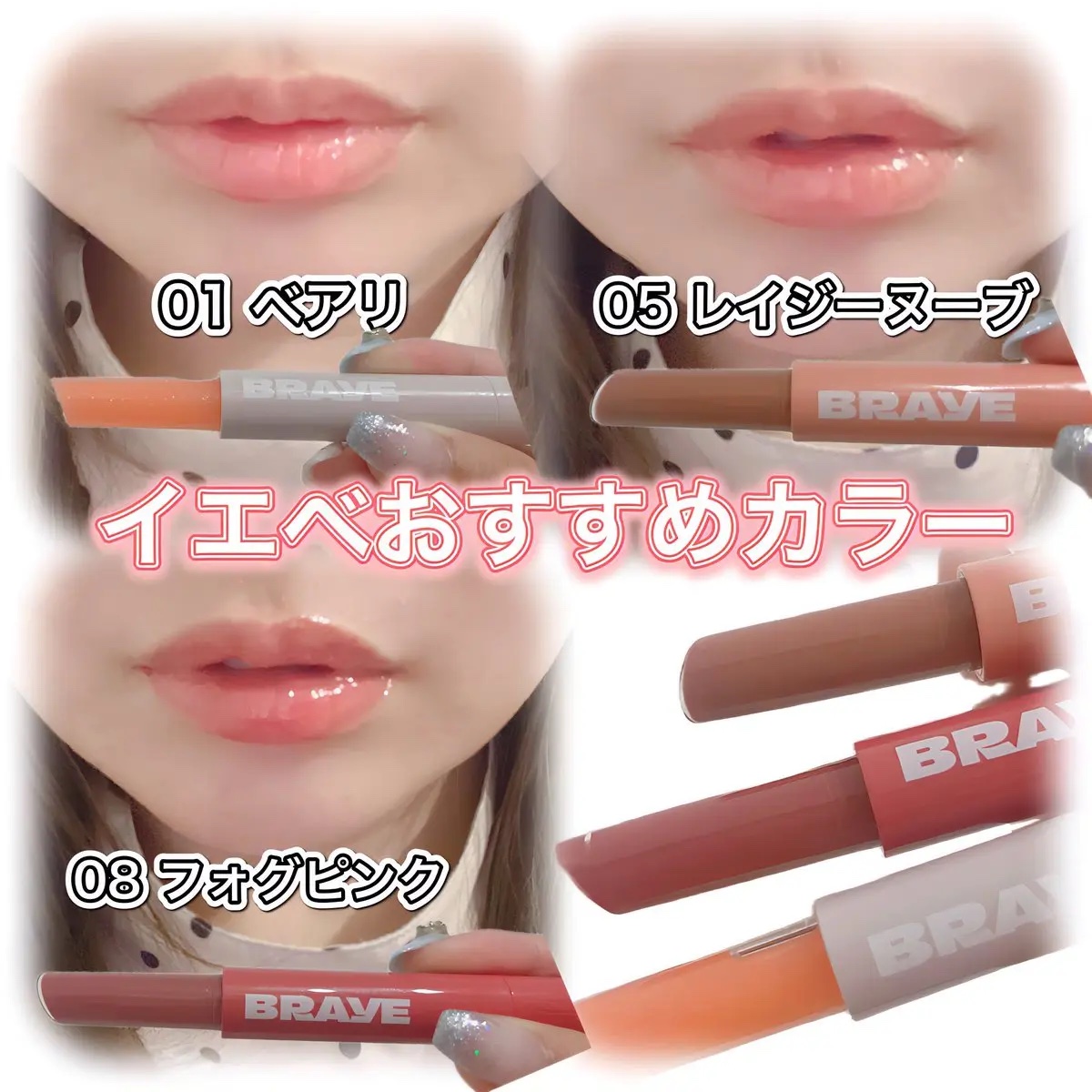 ・BRAYEの新作✨メルティングリップスウィート(全10色)プランピング効果・ツヤ感・洗練されたカラー展開がたまらない💋今回、人気BEST3色をお試し😘01ベアリ06ダスクローズ08フォグピンク私は自称ブルベ冬だけど、3色とも気に入ったよー😍...