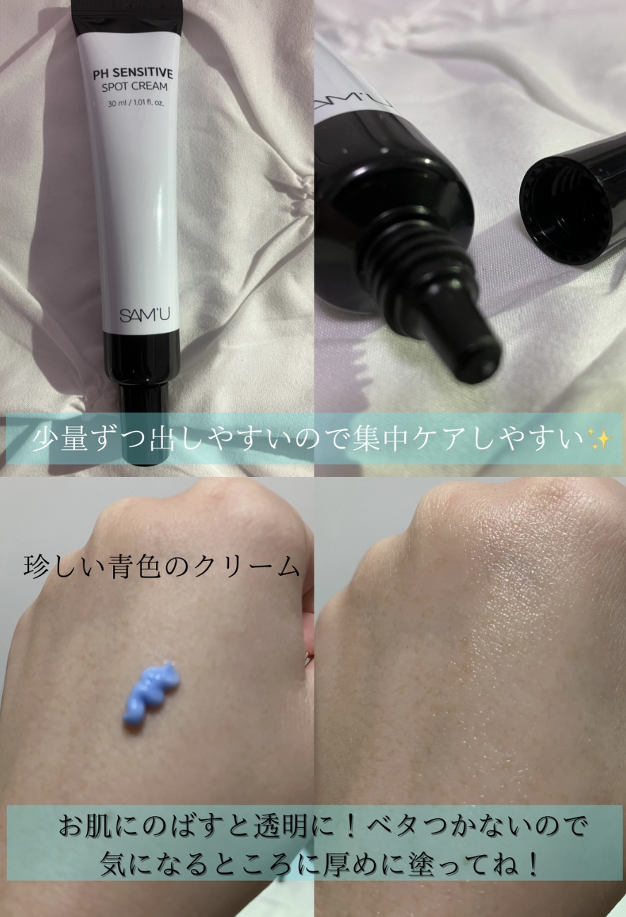 SAM'UPHセンシティブスポットクリーム¥2,420#提供💞青色の秘密はユーカリの葉から抽出したグアイアズレン❣️🌹肌馴染みがよくサラッとしてベタつかない🌹塗った後の肌がなるほどバリアの膜を張った感じ💞⭐️肌低刺激テスト済みの商品で崩れた肌...