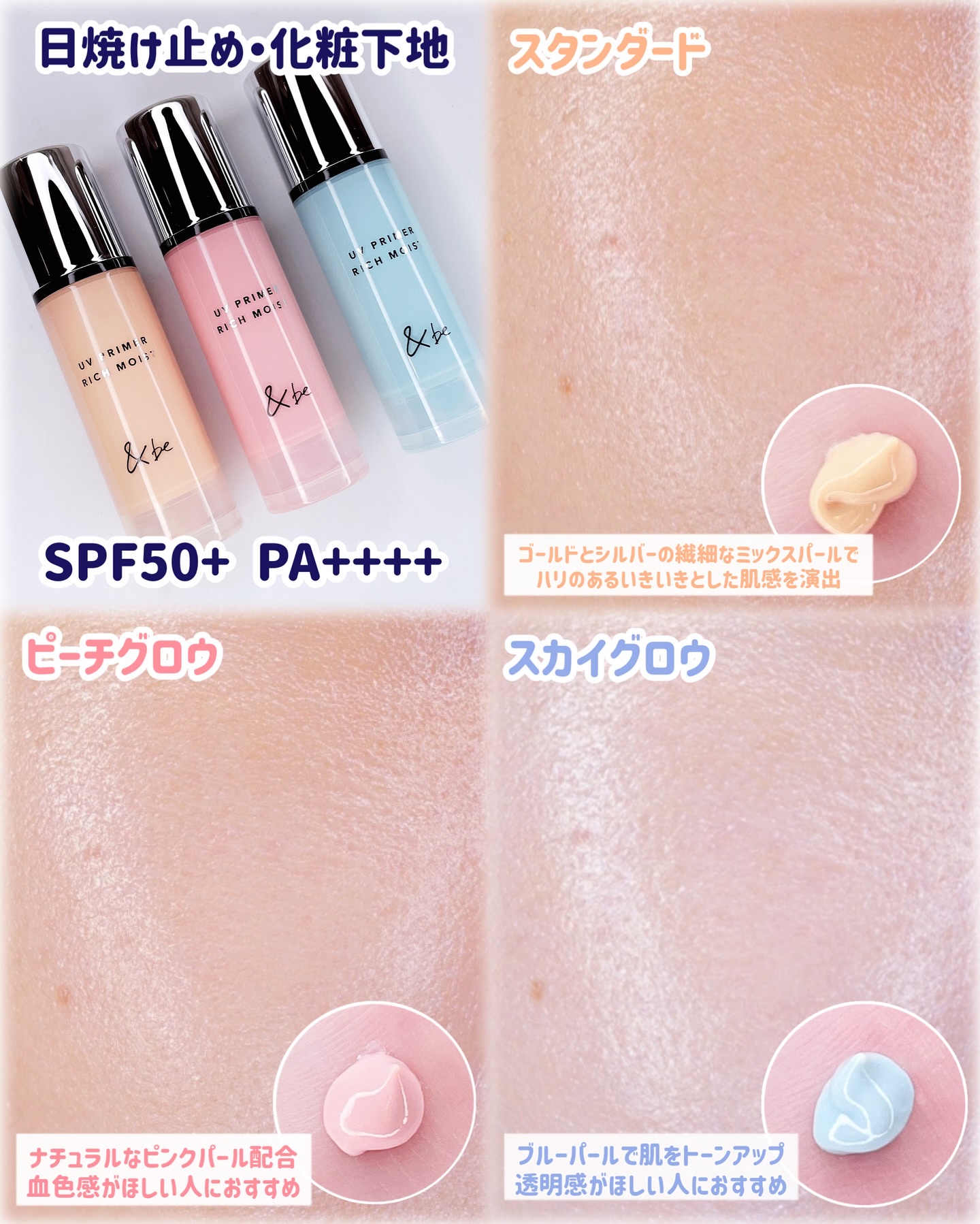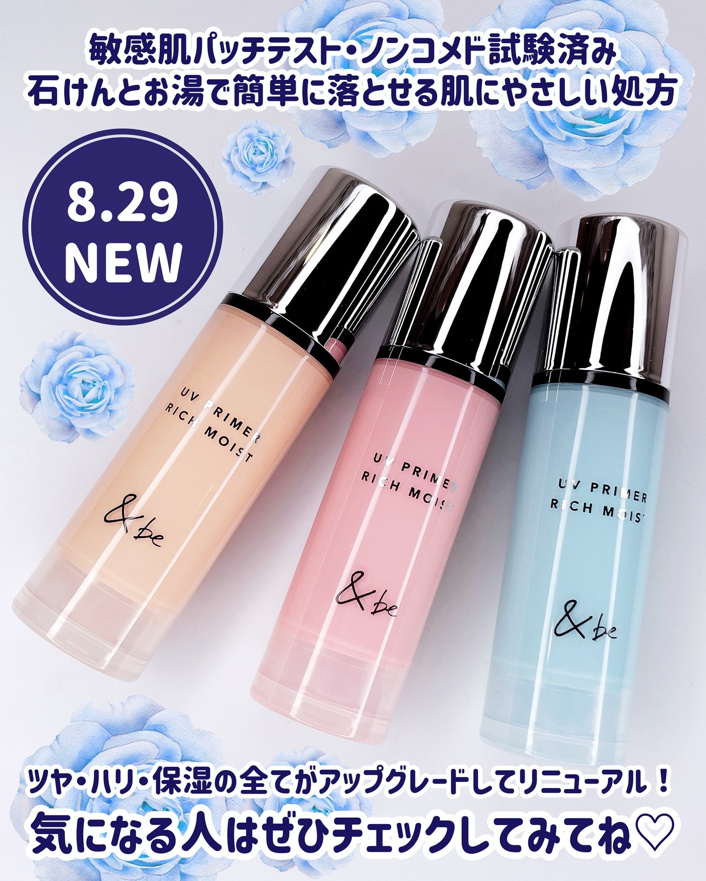 UVプライマーが進化して登場👏✨◼︎&beUVプライマーリッチモイストSPF50+/PA++++3,080円(税込)「ツヤ肌補正」「日焼け止め」「美容液」の3in1下地が8月29日にリニューアル発売します💓カラーごとに配合されてる成分が違って...