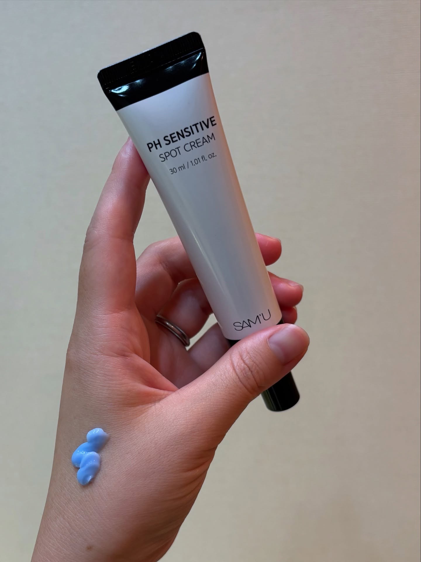 SAM'UPHセンシティブスポットクリーム¥2,420#提供💞青色の秘密はユーカリの葉から抽出したグアイアズレン❣️🌹肌馴染みがよくサラッとしてベタつかない🌹塗った後の肌がなるほどバリアの膜を張った感じ💞⭐️肌低刺激テスト済みの商品で崩れた肌...