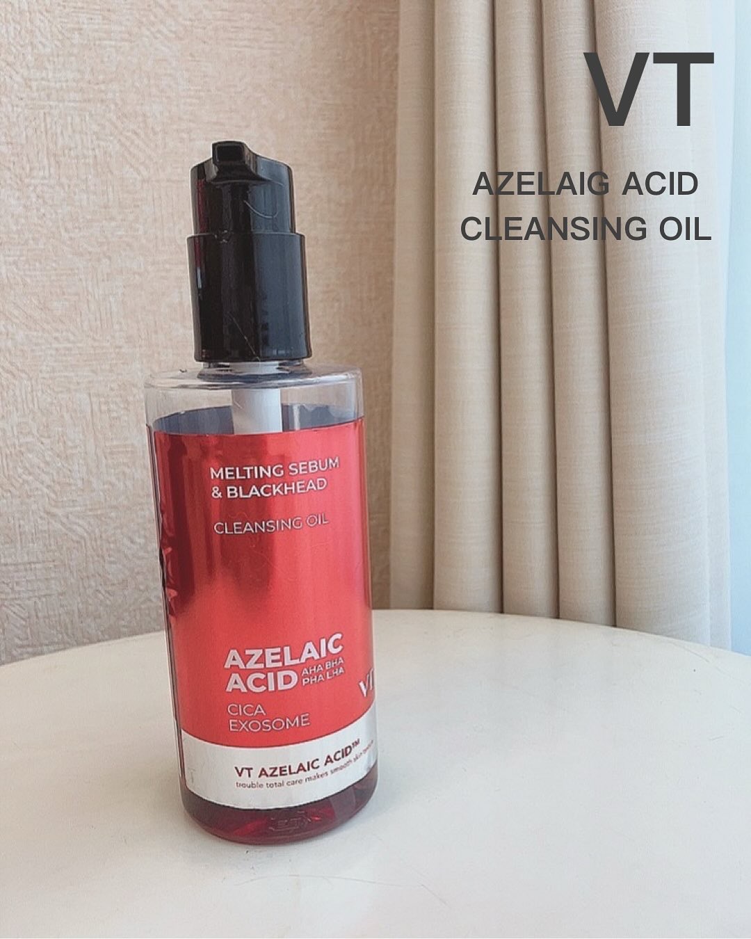 - 最近話題の毛穴ケア・整肌成分アゼライン酸!VTからはクレンジングオイルが登場! ポイントメイクまで落とすしっかりした洗浄力で、毛穴・皮脂までケアし保湿まで叶える一石三鳥アゼライン酸クレンジングオイル。 19種の植物性オイル*1も配合で、目に見えるブラッドヘッド*2から、隠れているホワイトヘッド*2、皮脂まですっきりケアします! ダブル洗顔不要! ※パッケージリニューアル ■このような方へおすすめ メイク・毛穴までディープクレンジング求める方 クレンジングでスキンケアまで行いたい方 ツッパリ感の少ないクレンジングを探していた方 ブラックヘッド*ケアも行いたい方 *1ダイズ油、アルガニアスピノサ核油、ユズ果実油、コメヌカ油、オタネニンジン種子油、アーモンド油、ザクロ種子油、リンゴ種子油、ホホバ種子油、ツバキ種子油、、バオバブ種子油、ユチャ種子油、ベニバナ種子油、ヒマワリ種子油、ヒポファエラムノイデス油、オリーブ果実油、アボカド油、アンズ核油、クロフサスグリ種子油(いずれも保湿) *2古い角質による