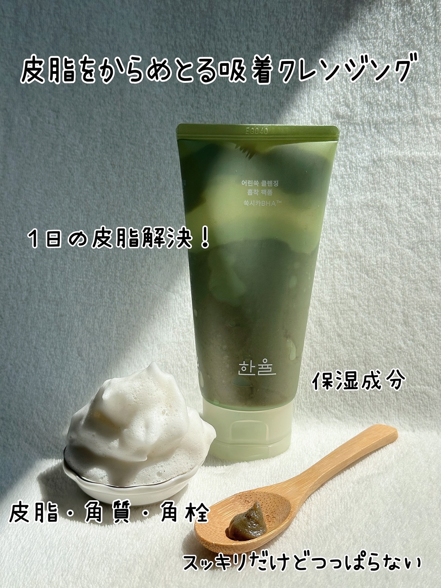 HANYULハンユル新芽のヨモギクレンジングパックフォームインナードライ肌のための弱アルカリのクレンジングパック🤍ヨモギ餅のような質感で皮脂をからめとる🙌10種のヒアルロン酸で角質層'10層まで*うるおい注入❣️保湿成分40%配合でツッパリ感...