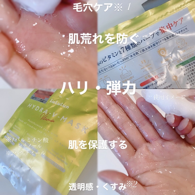 年齢や肌質にとらわれないで、誰もが抱える悩みに対してトータルケアできるなら使ってみたいよね❣️ それができるのが【ルルルンハイドラ V マスク】✨ 「うるおい+ビタミン」に特化した商品なんです🥰 シートがすごくてね、厚みがあって、ぐいっと上に引き上げながらはれるから、リフトアップにも繋がりそう❤ LuLuLunはさ、毎日の化粧水の代わりに使える化粧水フェイスマスクやから、それも人気の1つよね🥰