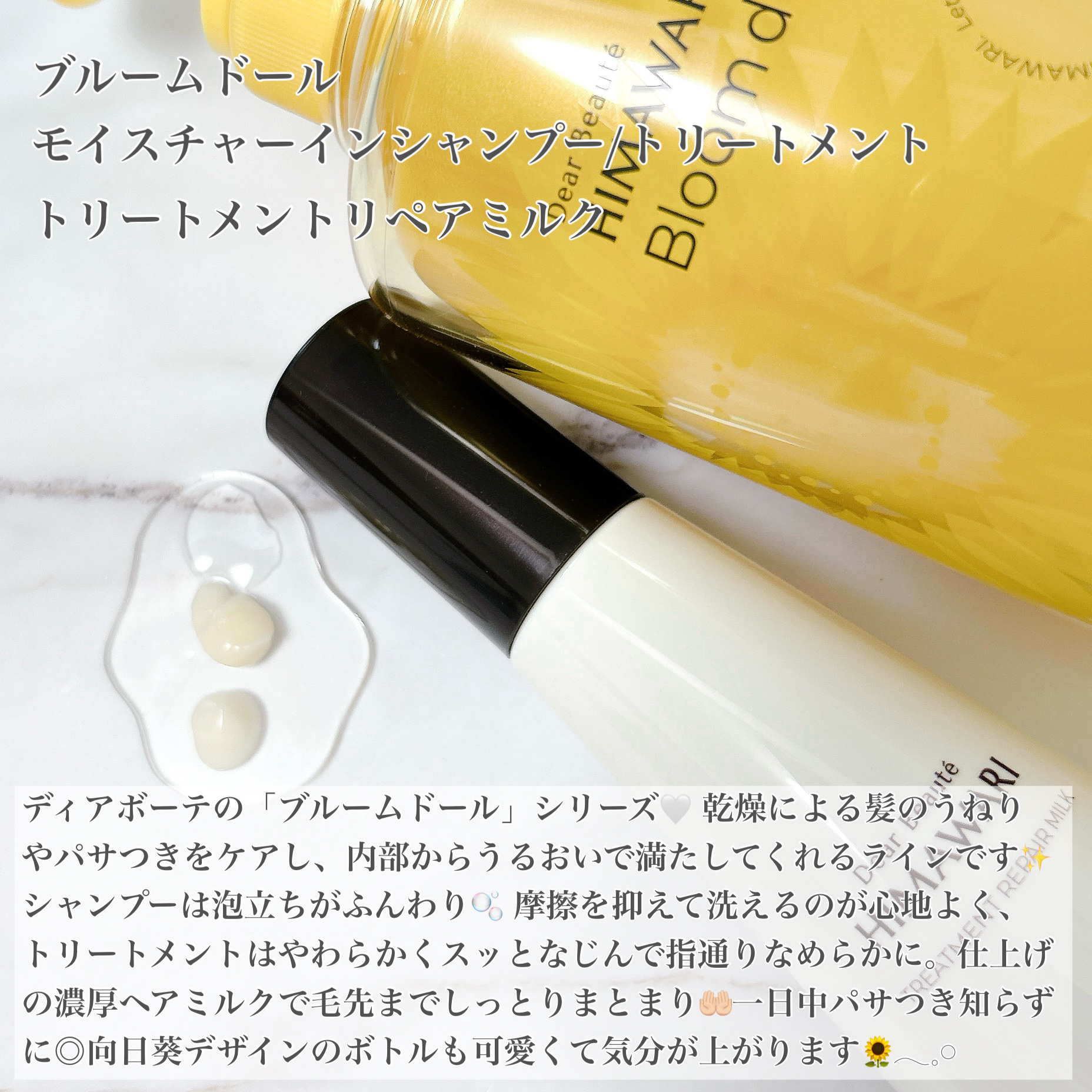 ディアボーテヘアケア💞💞ディアボーテブルームドールモイスチャーインシャンプー♡ディアボーテブルームドールモイスチャーイントリートメント♡ディアボーテトリートメントリペアミルク♡乾燥による髪のうねり、パサつきケアに、ディアボーテ最高峰シリーズ🌼...