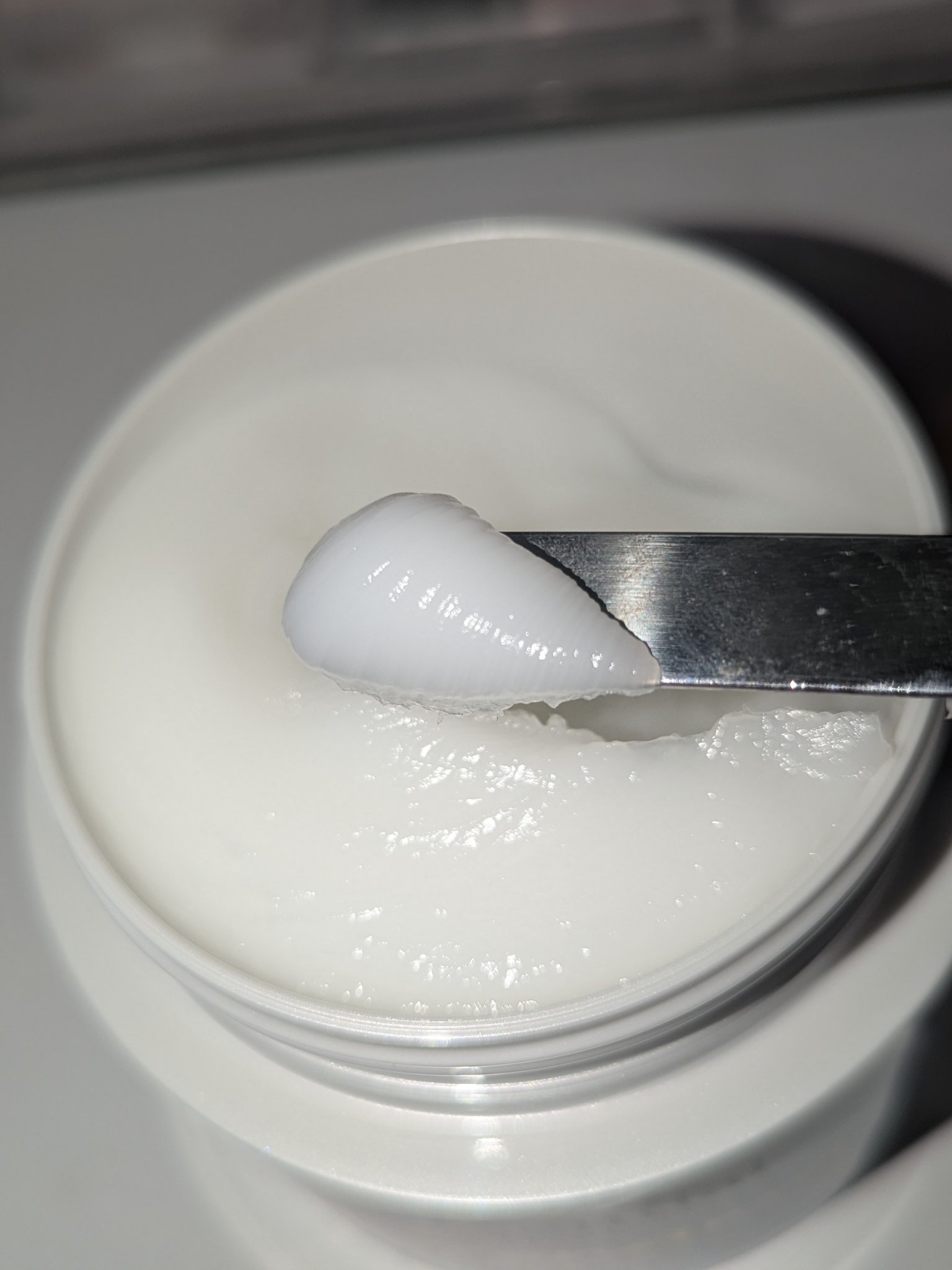 - <180g> 水、グリセリン、ステアリルアルコール、ジメチコン、ステアロキシプロピルジメチルアミン、乳酸、DPG、ヒマワリ種子油、ラノリン脂肪酸、ジラウラミドグルタミドリシンNa、γ-ドコサラクトン、ビスメトキシプロピルアミドイソドコサン、加水分解ケラチン(羊毛)、加水分解シルク、加水分解コラーゲン、加水分解コンキオリンタンパク、シア脂油、リンゴ酸、イソステアリルグリセリル、ポリグリセリン-3、スクワラン、ヒアルロン酸Na、ローヤルゼリーエキス、アモジメチコン、ビスセテアリルアモジメチコン、ラウレス-16、セテアレス-7、セテアレス-25、ポリクオタニウム-39、ポリアクリル酸、ポリアクリル酸Na、セバシン酸ジエチル、ベンジルアルコール、エタノール、BG、香料
