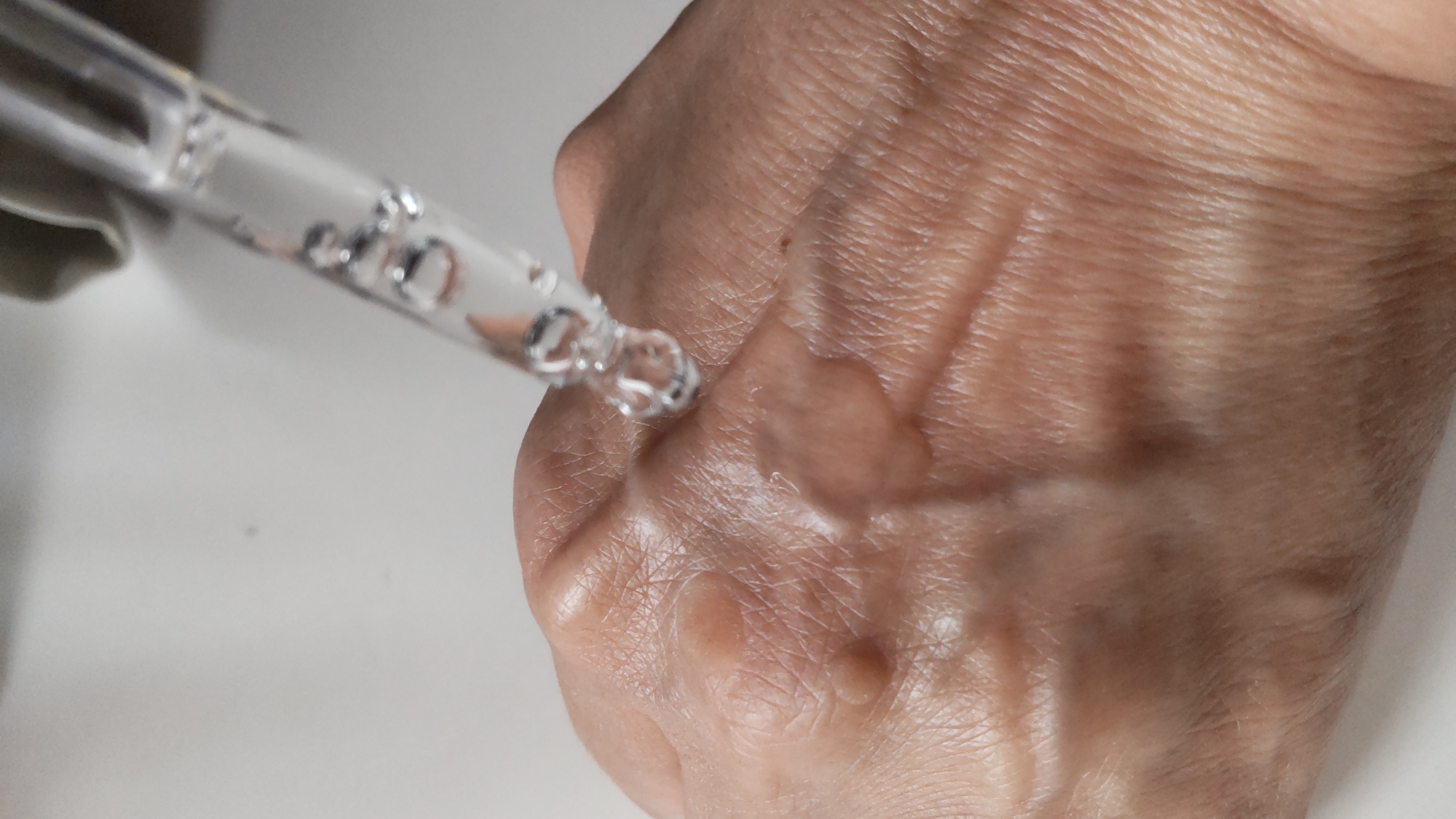 | 少しとろみがあるけど肌に出すとすーっと垂落ちてくるくらいのゆるめのテクスチャーで、のびが良い! | 詳細を見る | ||
