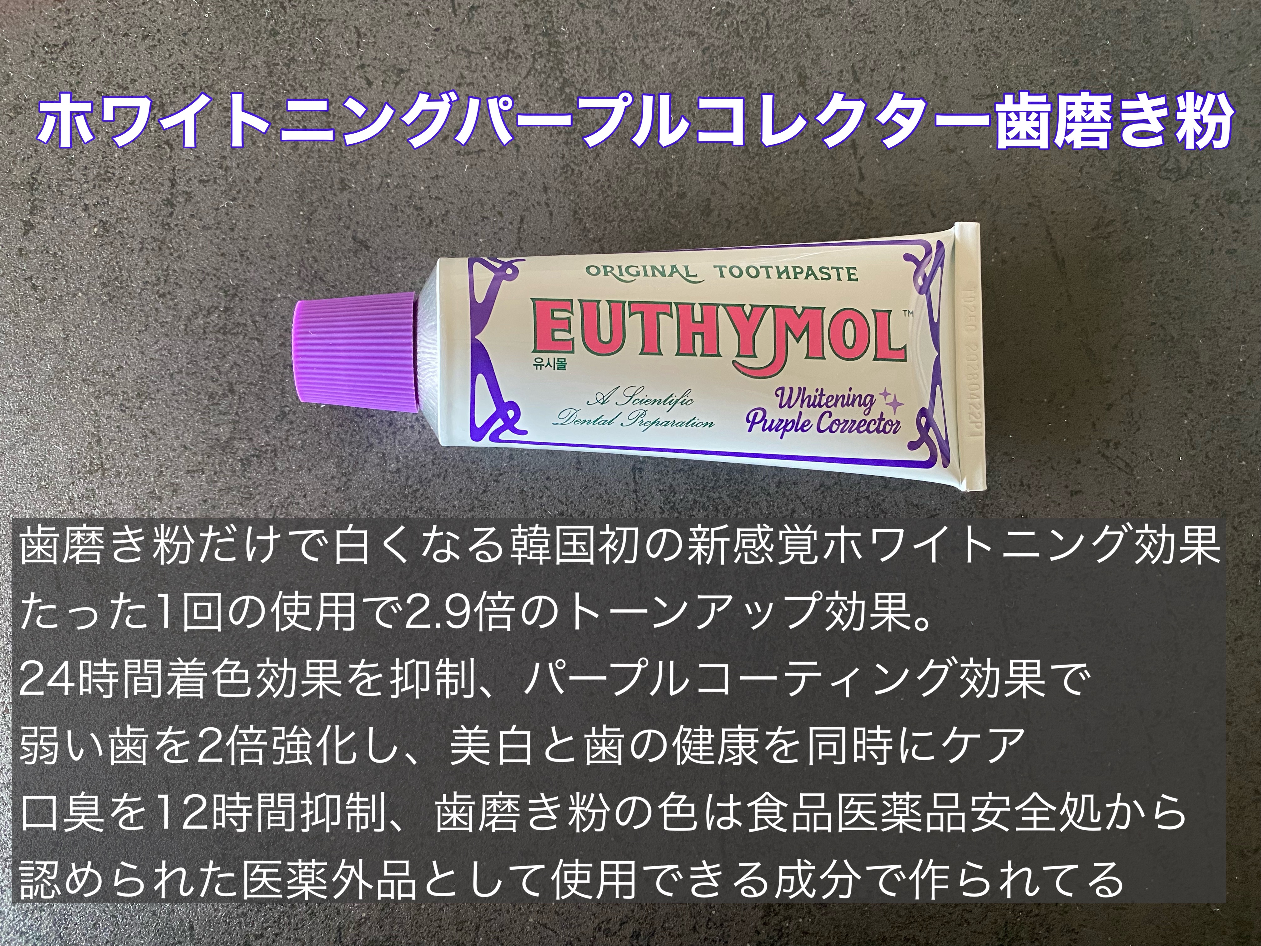 EUTHYMOLホワイトニングパープルコレクター歯磨き粉パープルコレクターローズミント歯磨き粉◾︎ホワイトニングパープルコレクター歯磨き粉口臭や歯の変色悩みを解決𝐩𝐨𝐢𝐧𝐭①1回の使用で2.9倍のトーンアップ効果②24時間続く着色防止バリアで...