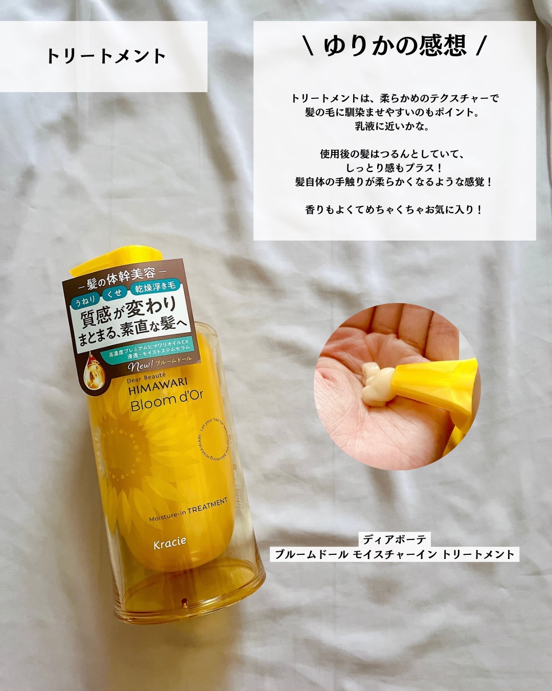 | シャンプーはもったりとしたテクスチャー!トリートメントは、こっくりとしたテクスチャーですが伸びが良く、髪に馴染ませやすいです♡ | 詳細を見る | |
