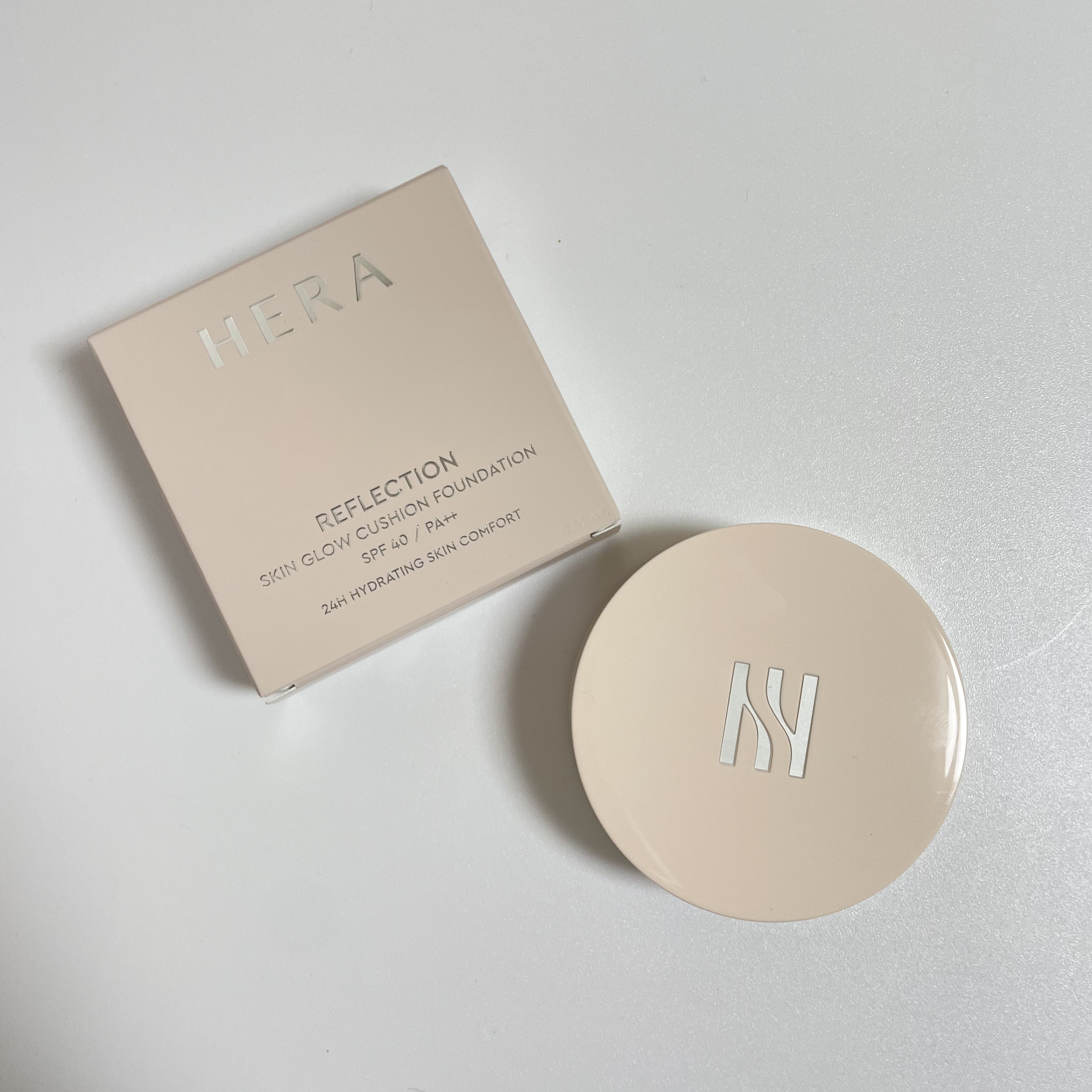 - ■光を味方につけ、しなやかに艶めくリフレクショングロウ クッションファンデーションでは初*1のコーティング技術・グロウリフレクサーTMを採用。 明るい陽の光が差し込むように、どの角度から見ても美しく艶めく立体感を叶えます。 HERA独自のグロウパウダー*2を配合し、透き通るようにエレガントで繊細なグロウ感を纏った上品な素肌感を演出。 時間が経っても、つけたての美しい艶肌が一日中つづきます。 ■美しい艶めきをキープする“ハイブリッドメッシュTM” スポンジ+メッシュのダブルフィルター構造の“ハイブリッドメッシュTM”を採用した新感覚クッション。 ダブル構造でみずみずしいファンデーションを薄く均一に肌にのせられるよう設計。 軽やかなテクスチャーがより繊細に、溶け込むように肌になじみ、美しい艶めきとメイクしたての仕上がりを長時間キープします。 ■24時間*3うるおいがつづくスキンケアフォーミュラ ペプチドを含む3種のカメリアコンプレックス*4配合で、キメがうるおいで満たされたようなしっとりとした付け心地。 さらに、ナイアシンアミド*5とビタミンC*6配合で肌にハリを与え、内側から艶めきがあふれるような透明感*7のある肌に導きます。 *1 アモーレパシフィック社において *2 セルロース *3 当社調べ、効果に個人差があります *4 ツバキ種子油、ツバキ種子エキス、ツバキ花エキス(保湿成分) *5 保湿成分 *6 アスコルビン酸(保湿成分) *7 うるおいによる