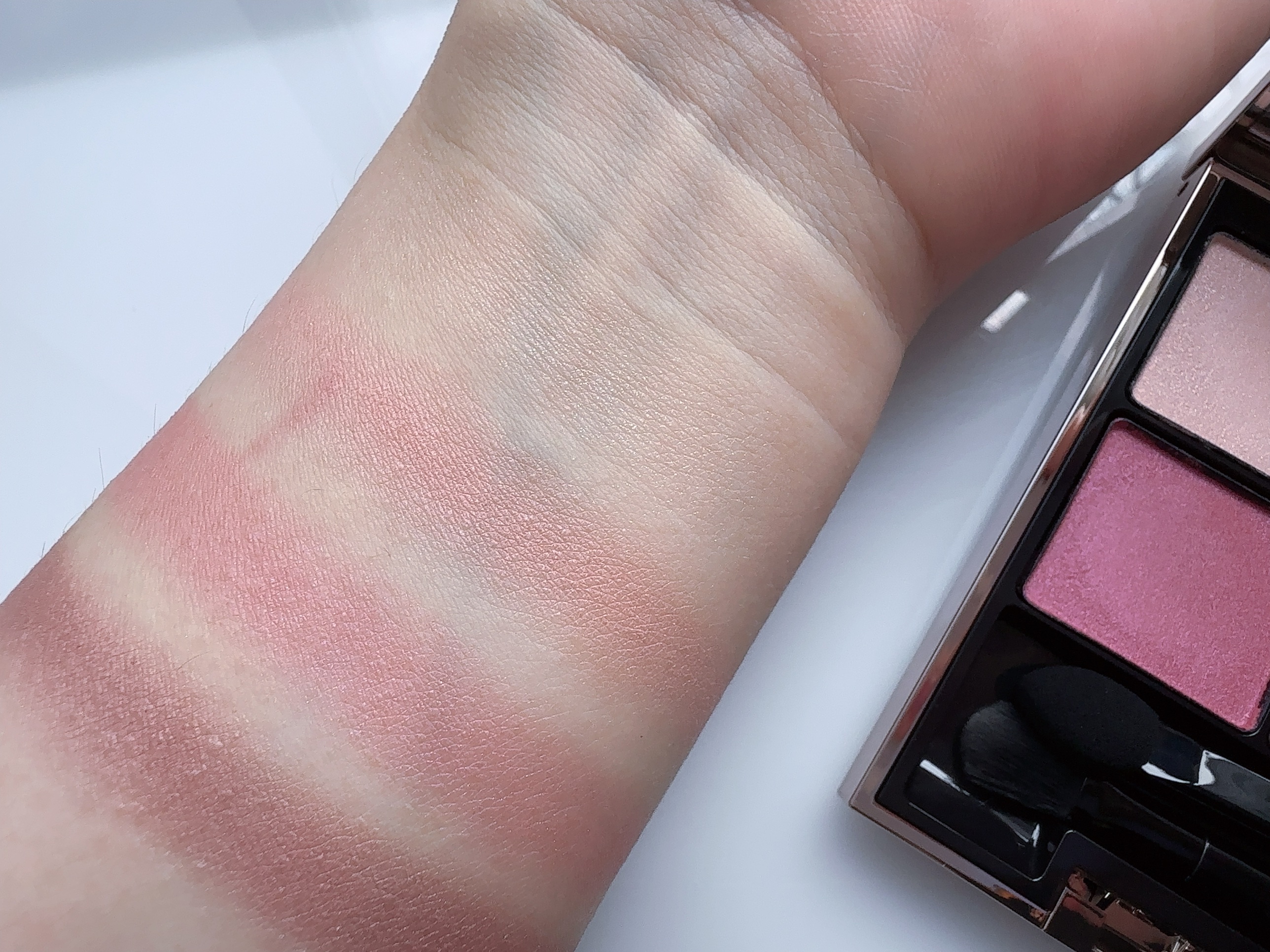 さらっとした軽く柔らかい粉質で、右下のパールは控えめなのでキラキラしたのが苦手な人にも使いやすいパレットだと思います。 グリッターもベースが細かいラメになってるから、ギラギラしすぎてないのが良かった。 好きなんだけど全部の色が思ったよりくすみが強かったので、ちょっと使いこなすのが難しい🤔 あとパレットの作りが少し安っぽいなぁという印象もありました