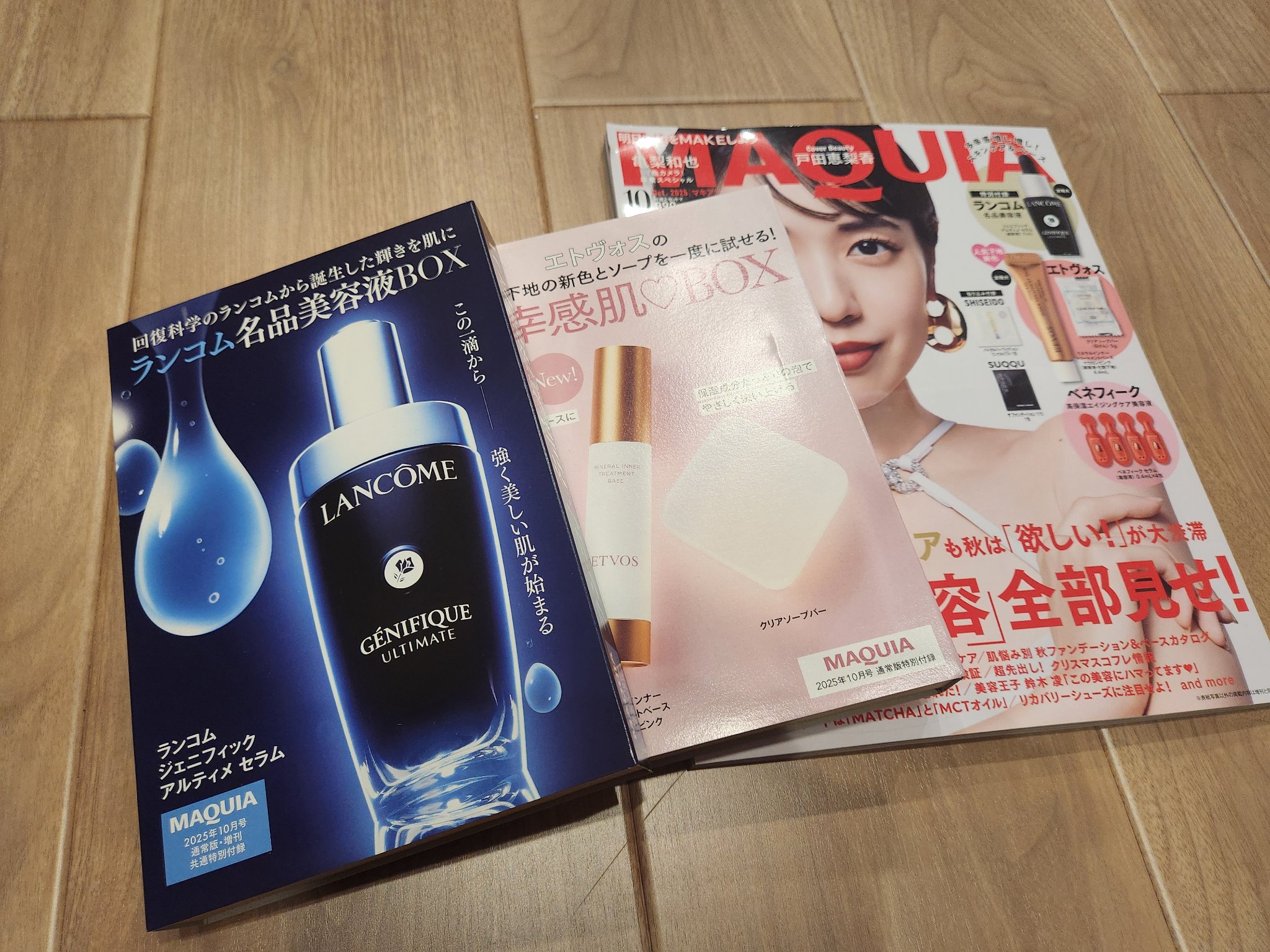 今月も豪華付録😭😭😭🫶MAQUIA10月号💗つぎくる美容の特集ではいろんな分野のネクストトレンドが一気に知れて面白かった🥺✨✨付録はとっっても豪華〜!資生堂ベネフィークのセラムは4包♥赤い実の美容液、4回分も試せるの嬉しい!さらに嬉しいBOX...