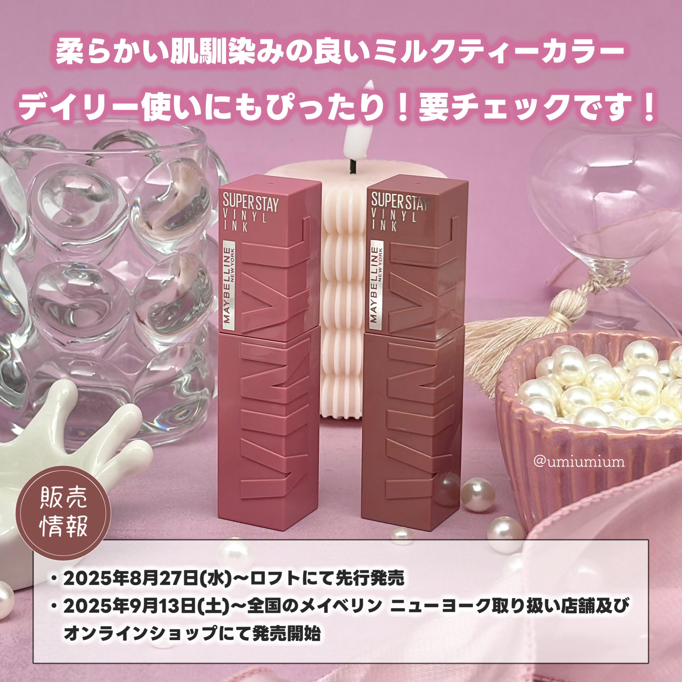 \パールミルクティーコレクション/バズってるメイベリンの#落ちないリップ*1に、秋冬限定のミルクティーカラーが登場!———-♡——————–♡———メイベリンニューヨークSPステイヴィニルインク各1,991円(税込)———-♡——————–♡...