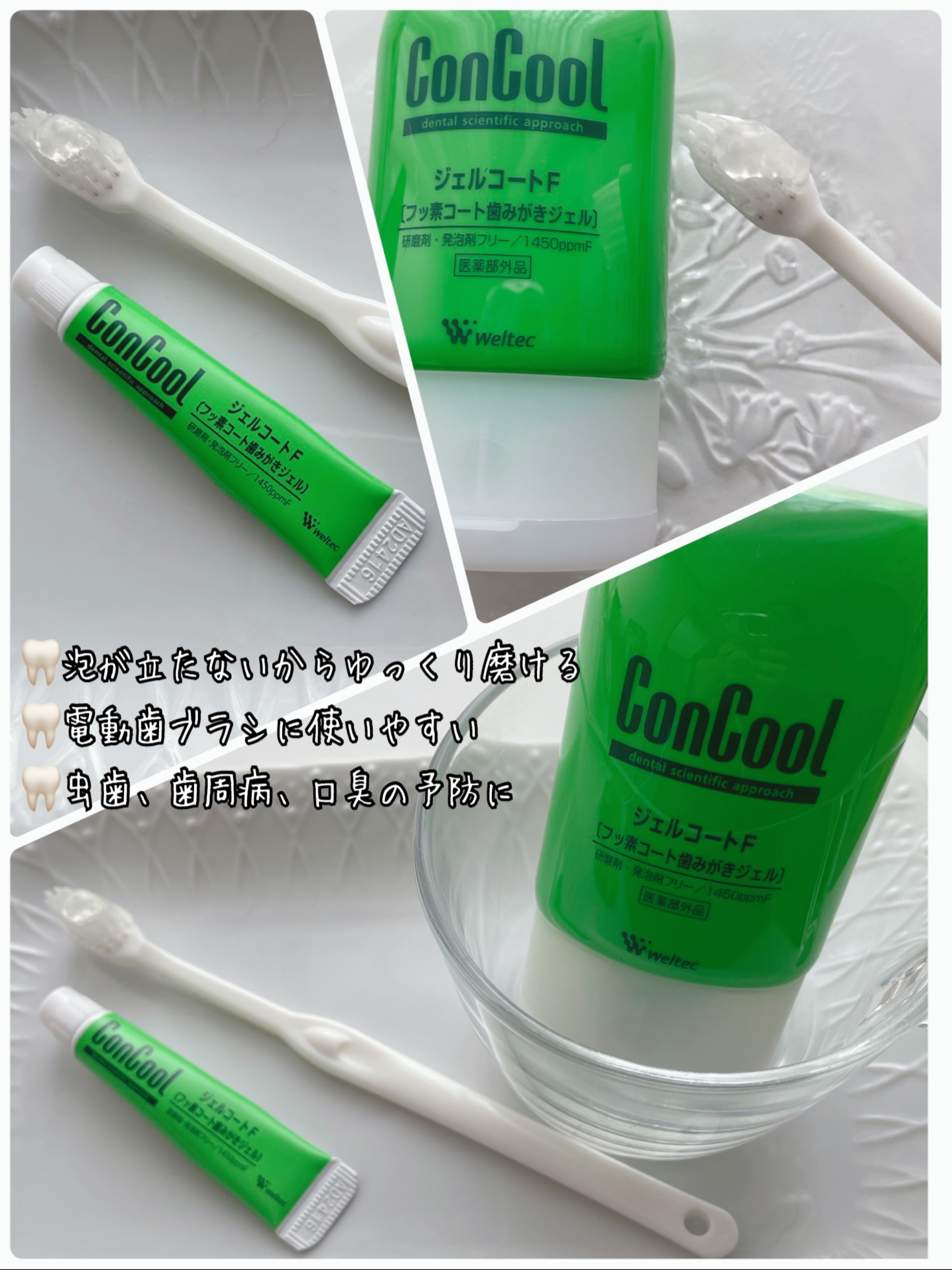 weltecConCoolジェルコートF90g医薬部外品〈効果・効能〉①ムシ歯の発生、進行・歯周炎・歯肉炎の予防、口臭の防止 ②ジェルコートFは高い殺菌力でムシ歯・歯周病菌をしっかり殺菌 ③発泡剤・研磨剤無配合のジェルタイプの歯みがき剤⇒磨い...