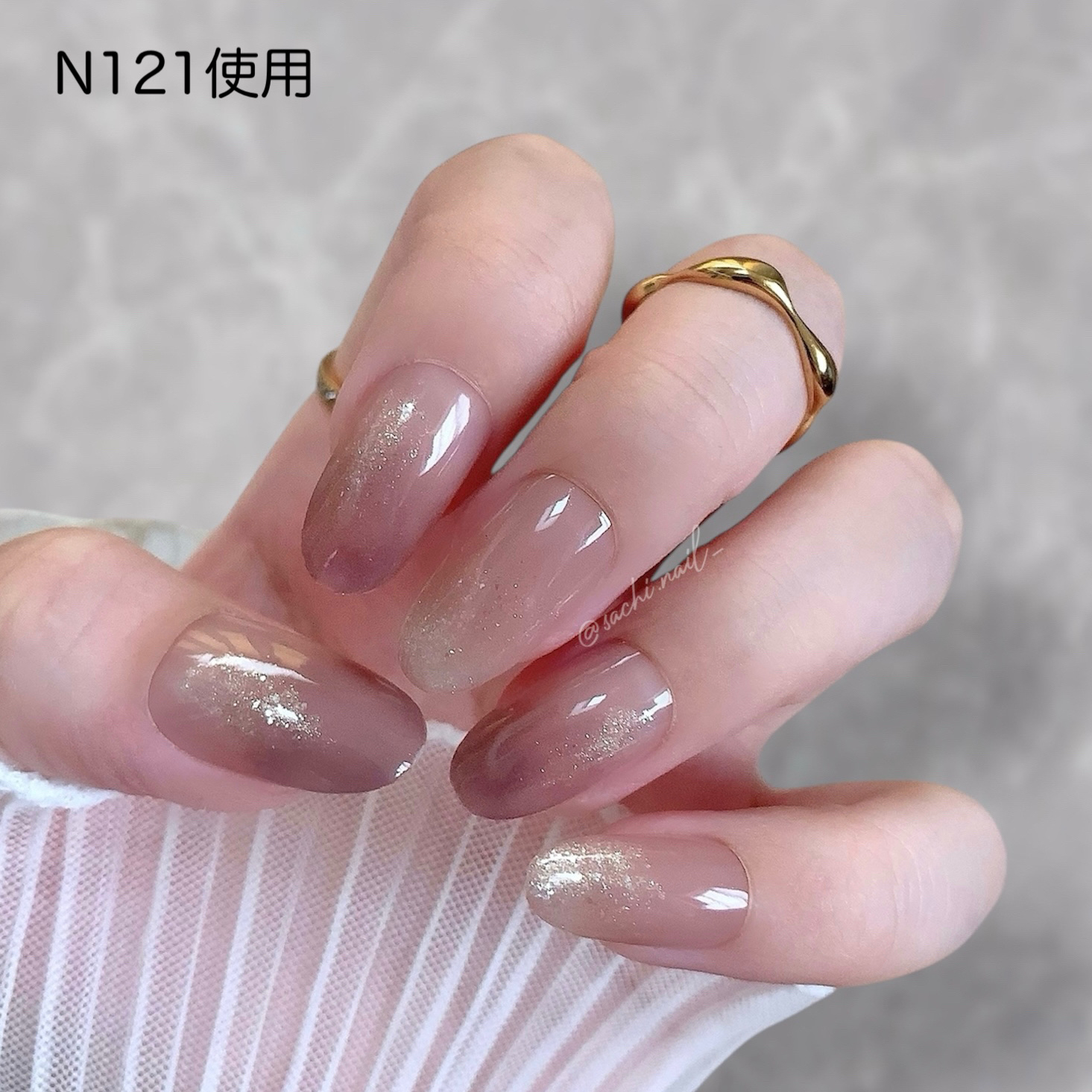 ワンカラーでも指ごとに色を変えるだけでオシャレに見えます💕 画像のようにゴールドラインとストーンを少し足すだけで華やかさがアップ🥰 何度かご紹介したことのあるスポンジで作るグラデーションです✨ スポンジを使うことで境目が綺麗に馴染んでくれます💕 アルミホイルの上でブラウンとトップコートを1:1くらいで混ぜたものを、トップコートのハケに取って3箇所に塗るだけ👌 事前に混ぜたものを塗ることで、爪の上でぼかすより簡単に出来ます💕 ベースカラーが乾く前に点置きしてぼかすことで綺麗にぼかせます✨ スピードが大事なので、使うポリッシュのキャップは全て開けておきましょう😊 天然石のラインはガタガタの方がより天然石っぽく見えるので、ラインを描くのが苦手な方でも大丈夫🙆♀️ 難しそうに見えて、やってみると意外と簡単に出来ます♡
