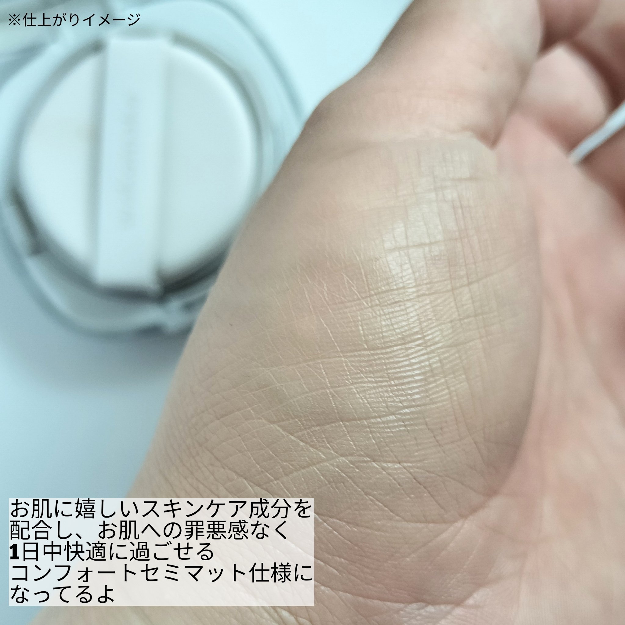 軽いつけ心地でベタベタせずだけど程よいカバー力で毛穴の凸凹を埋めてくれる感じですね。 光の加減によってツヤもでるので素肌感もある。 密着感があり、最近のお気に入りクッションに追加しまーす。冬場はどうしても頬の乾燥部分が気になるのでツヤ感があるタイプを選びがち。テカテカにならず程よいツヤ感が嬉しい。