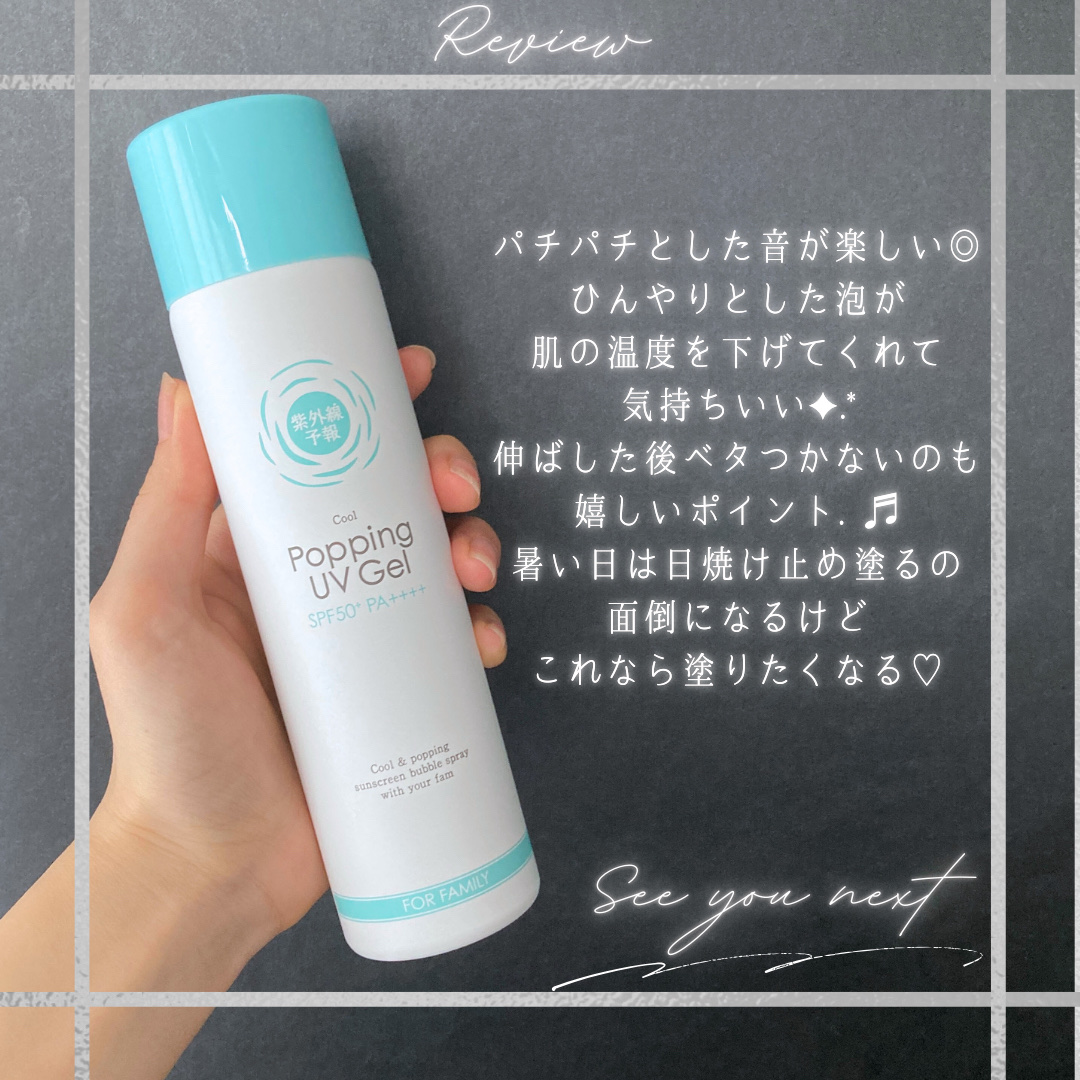 紫外線だけでなく暑さから逃れたい日が多かった印象です💦 毎日UVケアはするものの汗ですぐ流れてしまう… スプレーして出た泡を体に塗り広げると、パチパチ音を立てて肌をひんやりリフレッシュできます✨ 肌に優しい処方で石けんで落とせ、1歳から使用できます!! 家族みんなで使えるところも推せますね🩵