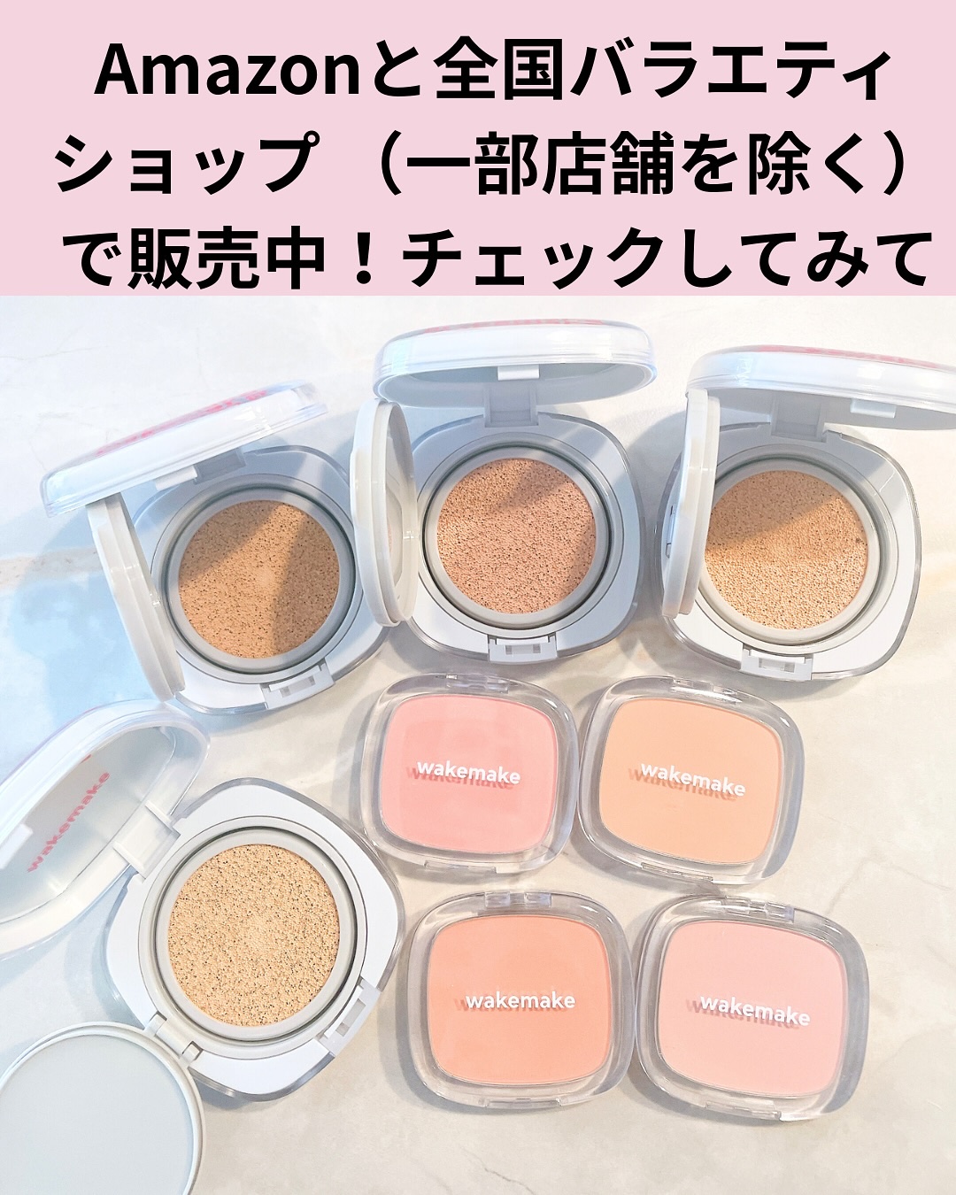 wakemakeのベースメイク!wakemake(ウェイクメイク) シームレスウェアクッション21Nバニラ22Nニュートラル22Pロージーニュートラル23ベージュ各2,890円(税込)シアーブリーズブラッシャー01ミルキーアプリコット02サー...