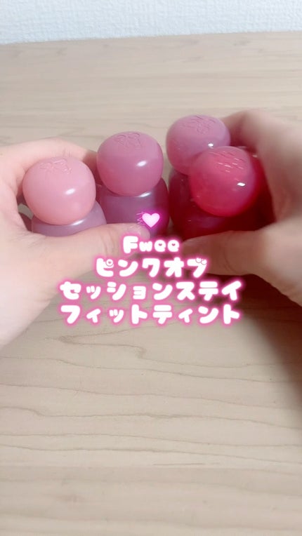 fweeのピンク20色ティント、メガ割で1色買い足しました♡ このティントは麺棒みたいなアプリケーターであんまり塗りやすくはないんだけど😂 色が好きなのと、匂いが美味しくて選びがち🍑