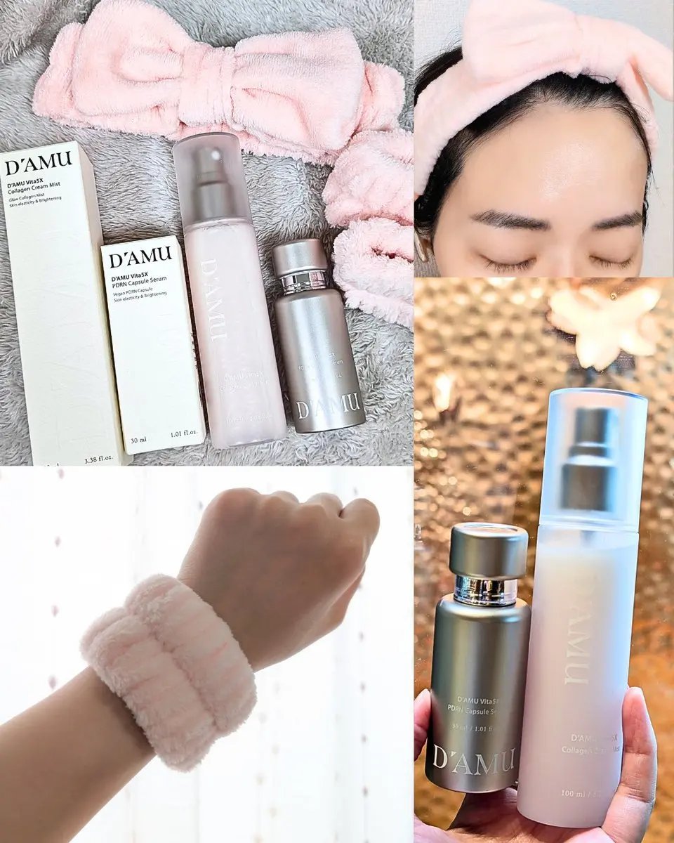 ピンクミストで話題な《D'AMU》のメガ割の限定企画セット、ピンクムードがかわいい🎀🫧🎀コラーゲンピンクミスト🎀PDRNセラム🎀洗顔ヘアバンド3点セット植物性コラーゲン成分*¹とビタミン成分でしっとりとした肌に導いてくれるピンクミストとてもき...
