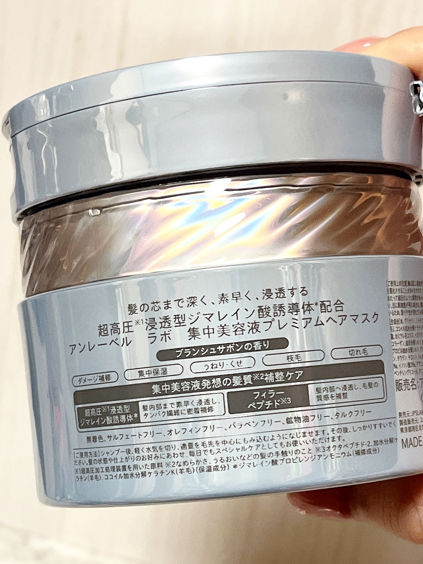 .髪質補正✨集中プレミアムマスク誕生👏アンレーベル DA Pヘアマスクは5in1でプレミアム補正ができるそう☝️ダメージセンサーペプチドでダメージを受けた部位にピンポイントでペプチド補修成分を届け、効果的なヘアケアを実現❗️髪の三層補修でキュ...