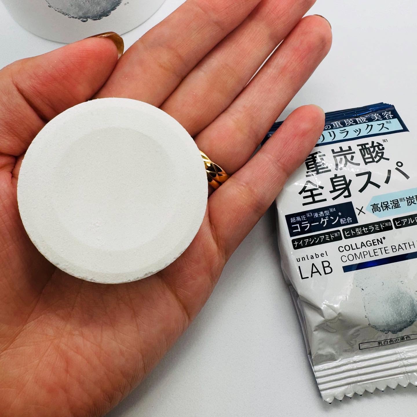 🛁【アンレーベルCOコンプリートバスタブレット】🛁 ⠀ がんばった今日の肌と心に、※1重炭酸スパというご褒美! おやすみ前の美容習慣にぴったりな“ととのう”入浴剤が登場したので試してみます。 ⠀ ・超高圧浸透型コラーゲン ・ナイアシンアミド×...