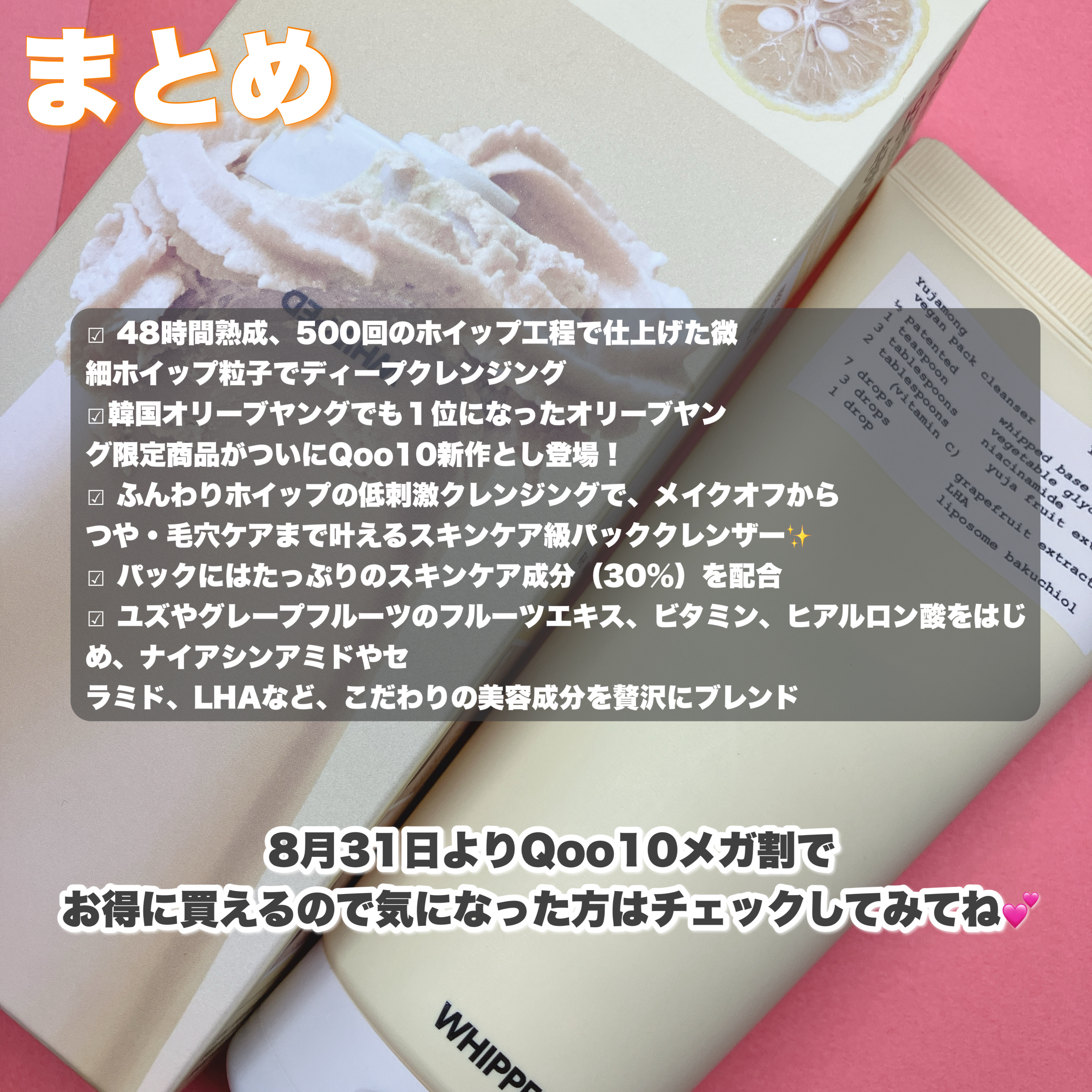 【#PR】第8期WHIPPEDCREWモニターイベントに当選してご提供いただきました🍀#WHIPPED☑︎ユジャモンヴィーガンパッククレンザー✔︎48時間熟成&500回のホイップ工程!微細ホイップ粒子でディープクレンジング✔︎クレンジング+パ...