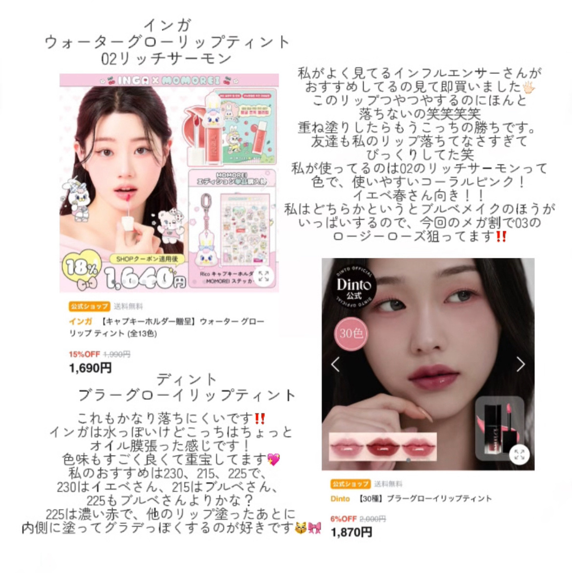 | リップティントランキング第170位 | 塗り心地も色味もふわふわしてるから、 ベタッと重くならずに使いやすい🫧 | 詳細を見る | ||