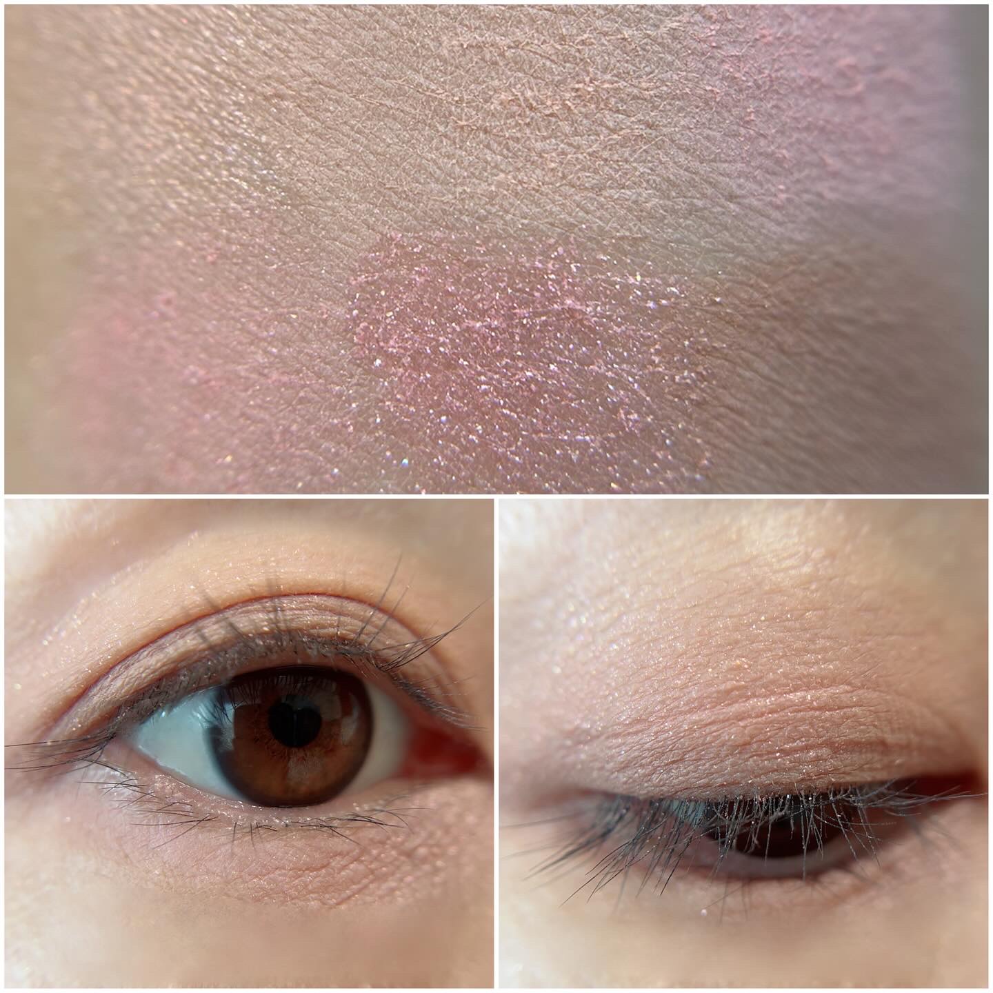 まずですね、ブルベよりかと思いきや、真ん中がピンク系ブラウンなんですよ! 真ん中の色が中和役になりますね! そして左上のグレイッシュカラー…既視感あるなーと思ったら大好きなモノクルールのベージュミッツァ! スウォッチで比べてみたらサンクの方がグレイッシュでしたね! 締め色もしっかりしてるしトータル的にバランスのいいパレット そしてやはり粉質が好きですね! ベースなしで使っても色もちも発色も抜群すぎてDiorさん流石ですってなりました👍 どちらかというとサマーよりのカラーの方が透明感がでます^ ^ ニュートラルな肌でサマー要素やブルベよりの肌の方はとってもハマるブラウンシャドウだと思います🥰 一つ前に投稿したルミナイザーと合わせても可愛くてお気に入りです♪